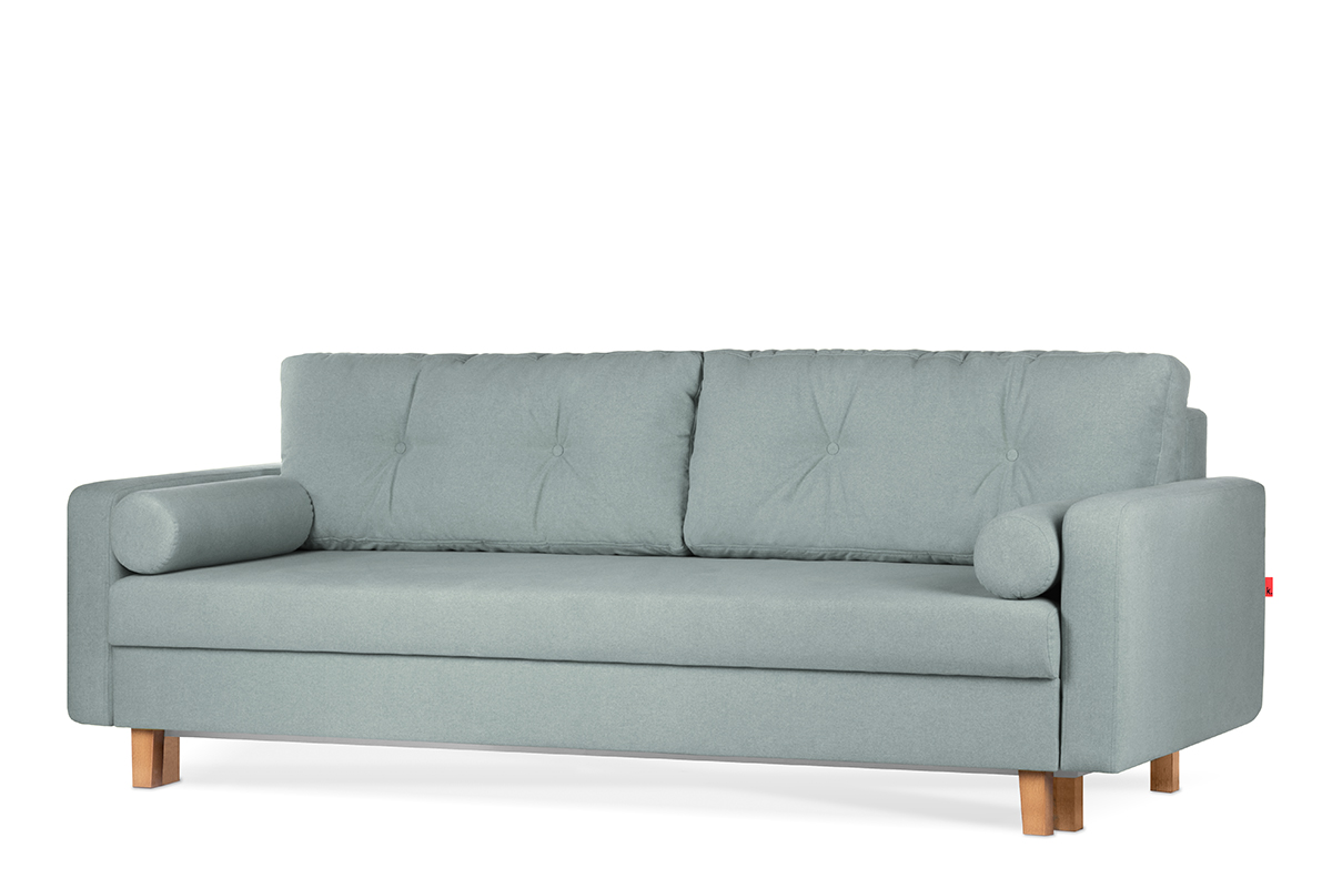 Kolekcja mebli w stylu skandynawskim ERISO łączy w sobie minimalizm, prostotę i funkcjonalność. Sofa posiada wygodny typ rozkładania DL oraz powierzchnię spania 150x200 cm. Kolekcja ERISO wyróżnia się wyjątkowym designem. Ozdobne pikowania i okrągłe poduchy podkreślają jej wyjątkowy, skandynawski charakter. Drewniane nóżki nadają sofie lekkości i uwydatniają jej indywidualny, niepowtarzalny wygląd. ERISO to wygodne, komfortowe sofy. Podczas jej projektowania czerpaliśmy inspiracje z najnowszych skandynawskich trendów. Nowoczesna stylistyka sofy w stylu skandynawskim sprawdzi się w każdym wnętrzu. Sofa w kolorze szarym, miętowym, żółtym i beżowym ożywią jasne i surowe skandynawskie wnętrza. Połączenie stonowanej kolorystyki z kolorowymi sofami o tradycyjnie-nowoczesnym wyglądzie zaakcentuje i podkreśli skandynawski charakter każdej aranżacji.