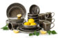 Zestaw obiadowy w stylu loft 6os. (18 el.) szałwiowy