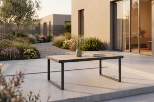 | Patio 15-20 m² | 150-180×90 cm lub okrągły Ø120 | 6-8 osób | Drewno robinia/stal |