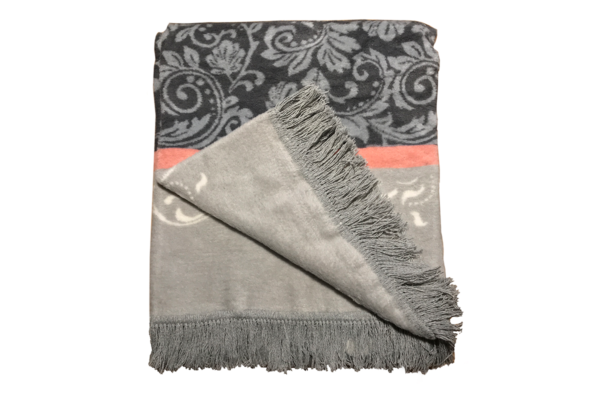 11820.01.973|150x200 cm|58% bawełna, 32% akryl, 10% poliester|szary/czarny/beżowy/koralowy
