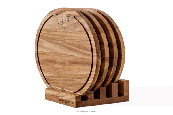 12845.12.940|4x śr. 32 | h 2 cm | 31,5x7,5x18,4|drewno dębowe|dąb olejowany