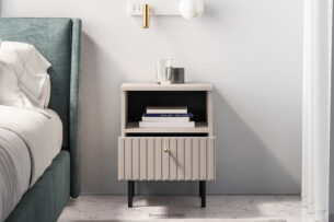 Kremowy stolik nocny z lamelami na wysokich nóżkach