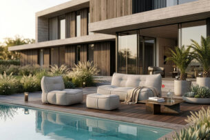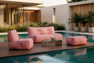 Miękka pufa ogrodowa w tkaninie plecionej outdoorowej...