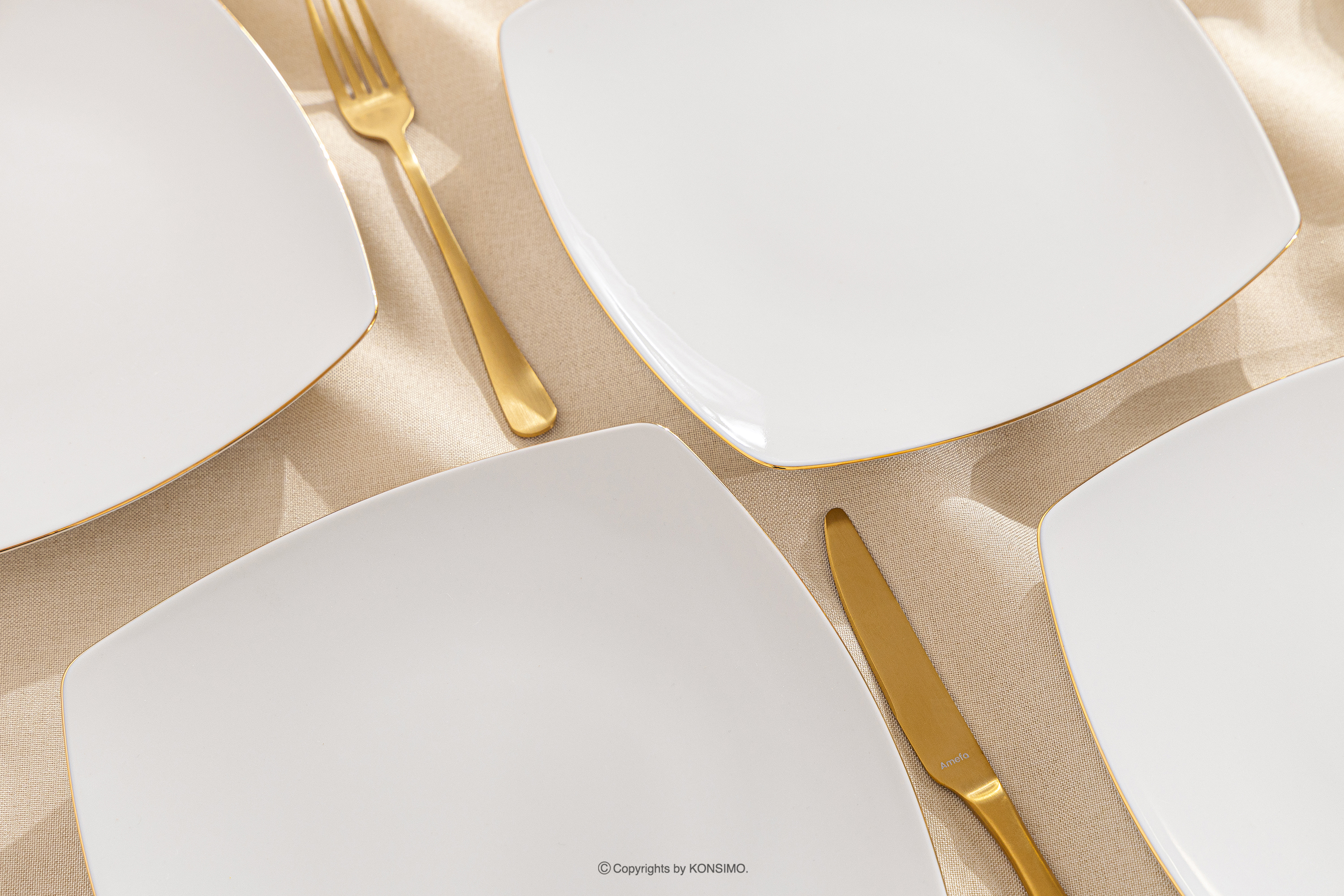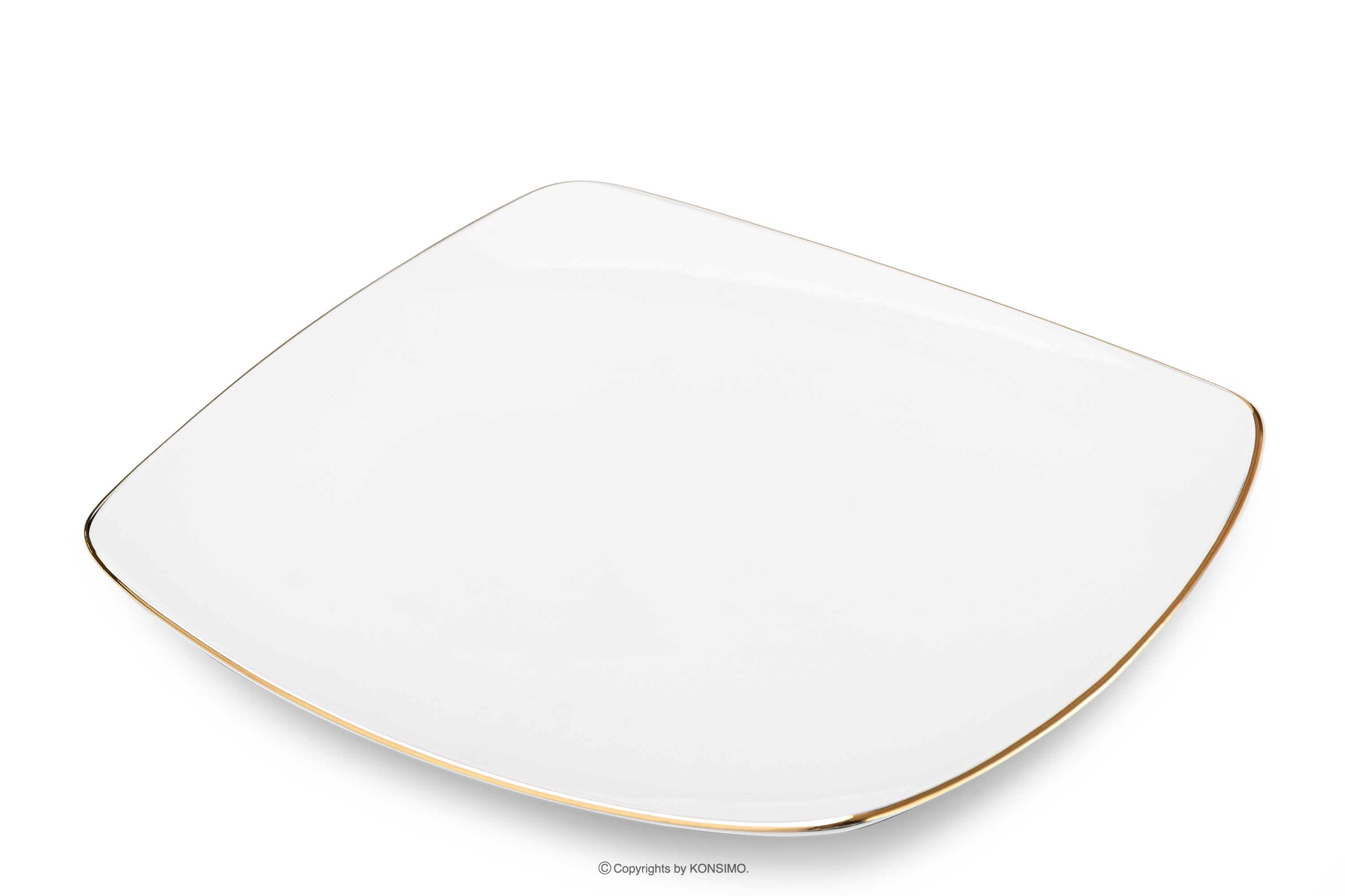 Talerz obiadowy złota linia to produkt, który stanowi prawdziwą kwintesencję stylu i klasy. Jego wyjątkowy design, oparty na kwadratowym kształcie, nadaje każdemu elementowi nowoczesny charakter. Delikatna linia na rancie dodaje subtelnego blasku, co sprawia, że nie tylko doskonale spełnia swoją funkcję, ale także staje się elementem dekoracyjnym, który przyciąga uwagę. Delikatny rant, będący znakiem rozpoznawczym kolekcji CARLINA, sprawia, że całość nabiera lekkości, dodając jednocześnie wyjątkowego uroku.