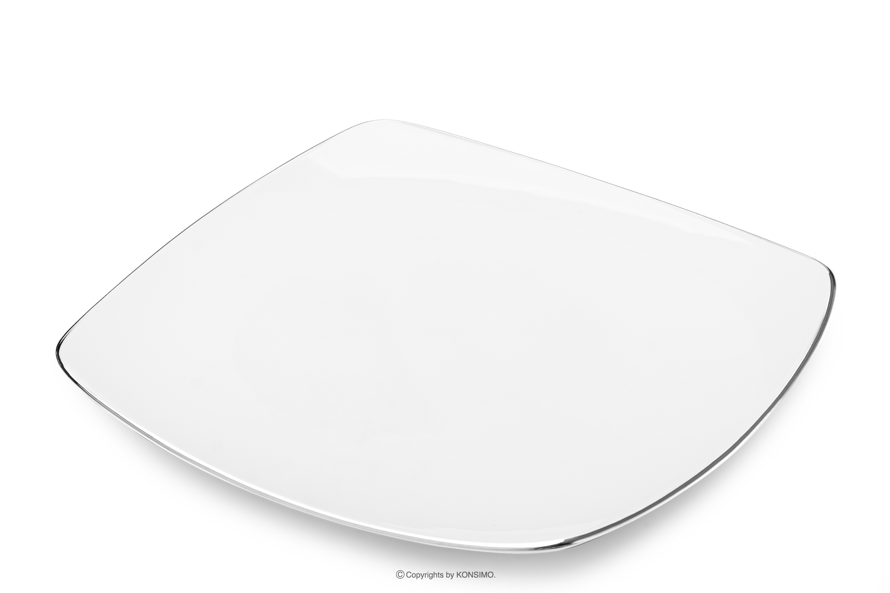 Talerz obiadowy platynowa linia to produkt, który stanowi prawdziwą kwintesencję stylu i klasy. Jego wyjątkowy design, oparty na kwadratowym kształcie, nadaje każdemu elementowi nowoczesny charakter. Delikatna linia na rancie dodaje subtelnego blasku, co sprawia, że nie tylko doskonale spełnia swoją funkcję, ale także staje się elementem dekoracyjnym, który przyciąga uwagę. Delikatny rant, będący znakiem rozpoznawczym kolekcji CARLINA, sprawia, że całość nabiera lekkości, dodając jednocześnie wyjątkowego uroku.