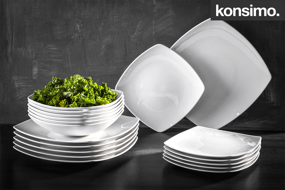 dla produktu Serwis obiadowy kwadratowy 6 os. 18 elementów biały