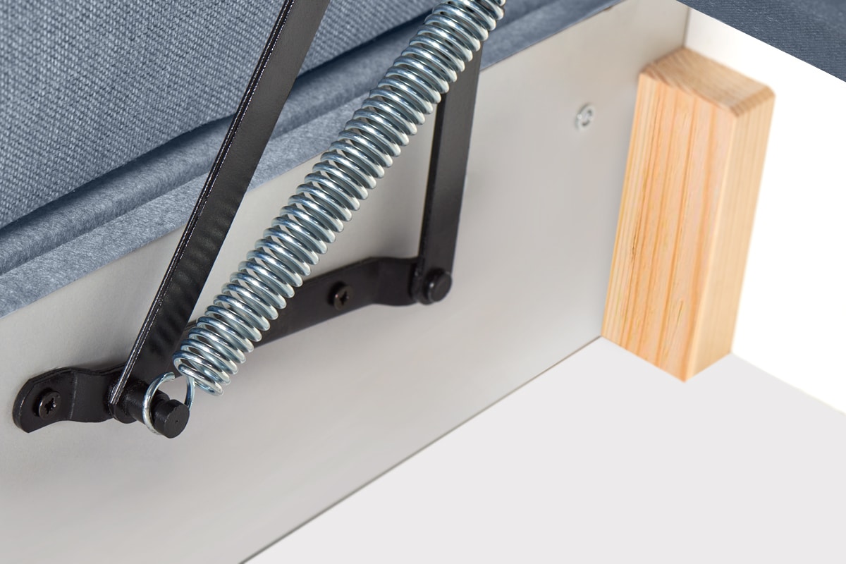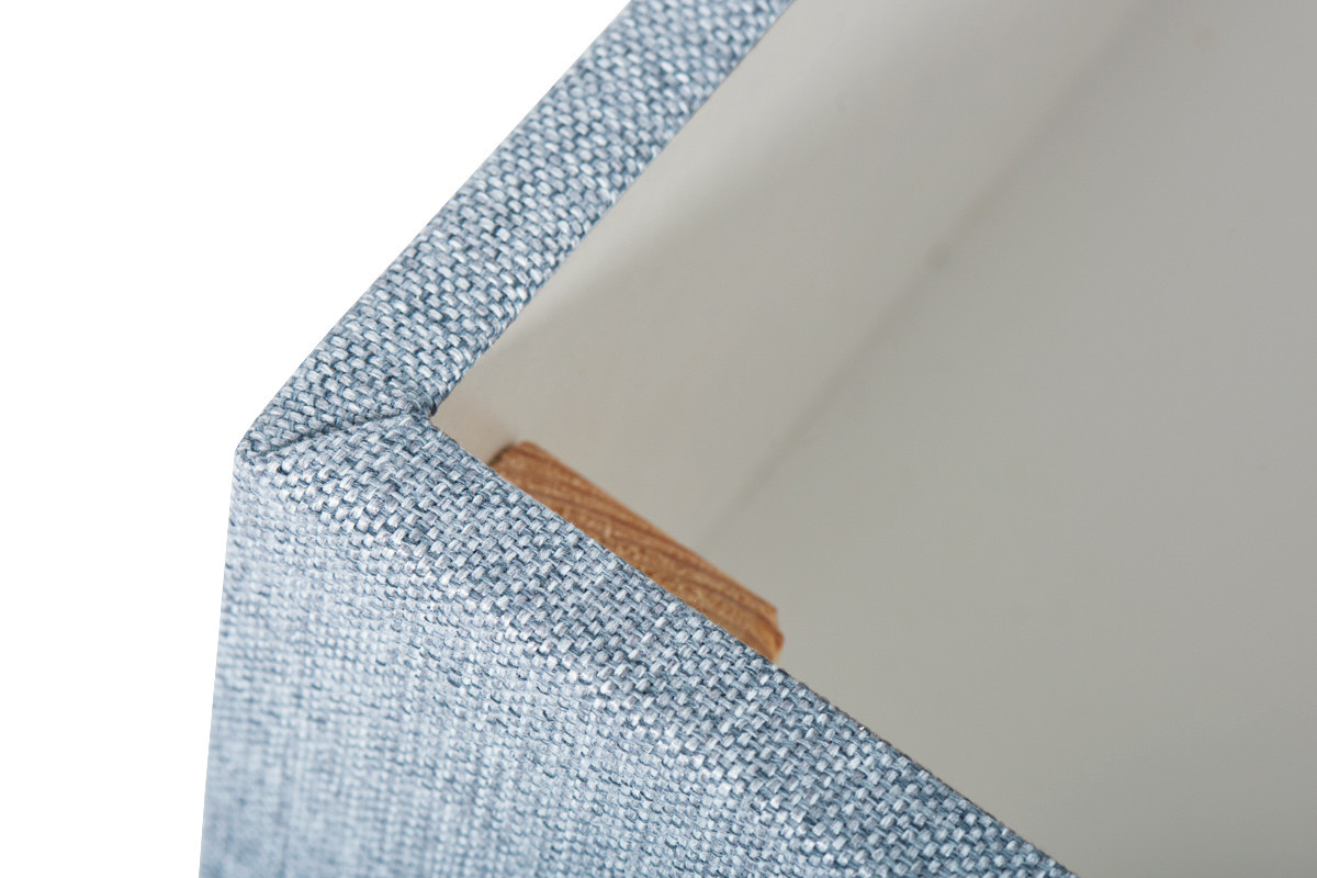 • Stelaż: płyta pilśniowa 3,2mm, wnętrze płyta wiórowa 16mm biała, zewnętrzna część skrzyni otapicerowana tkaniną techniczną