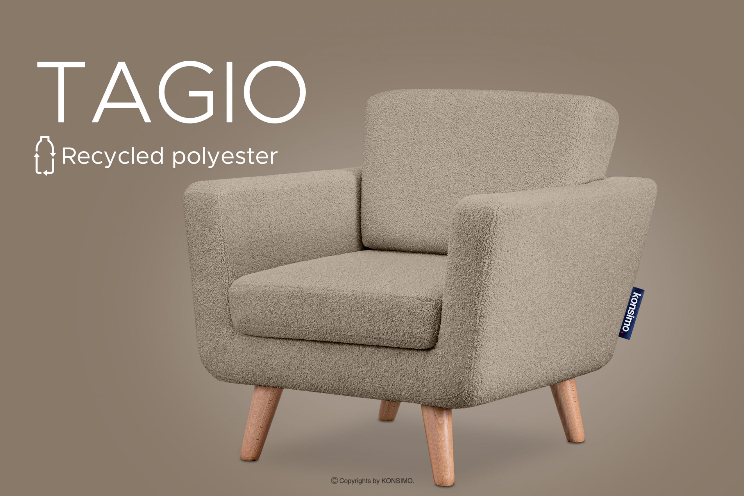 TAGIO zobacz całą kolekcję Szarobeżowy fotel skandynawski w tkaninie baranek- kolor szarobeżowy