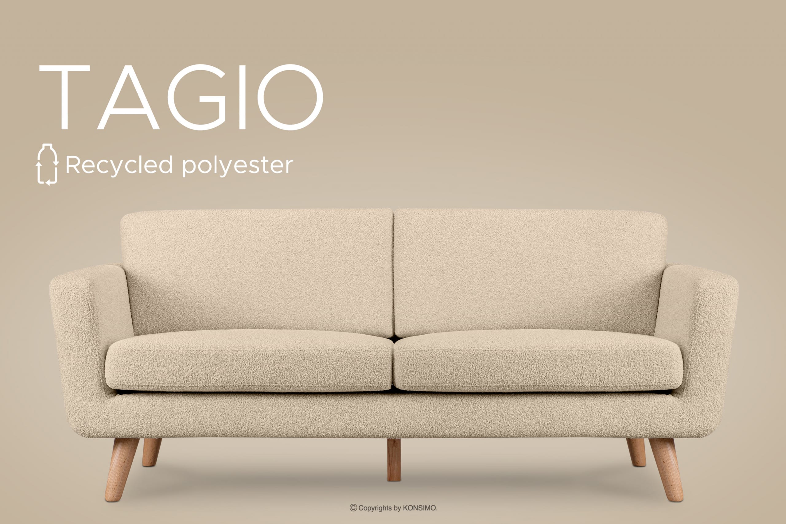 TAGIO zobacz całą kolekcję Skandynawska sofa 3 osobowa w tkaninie baranek beżowa- kolor beżowy