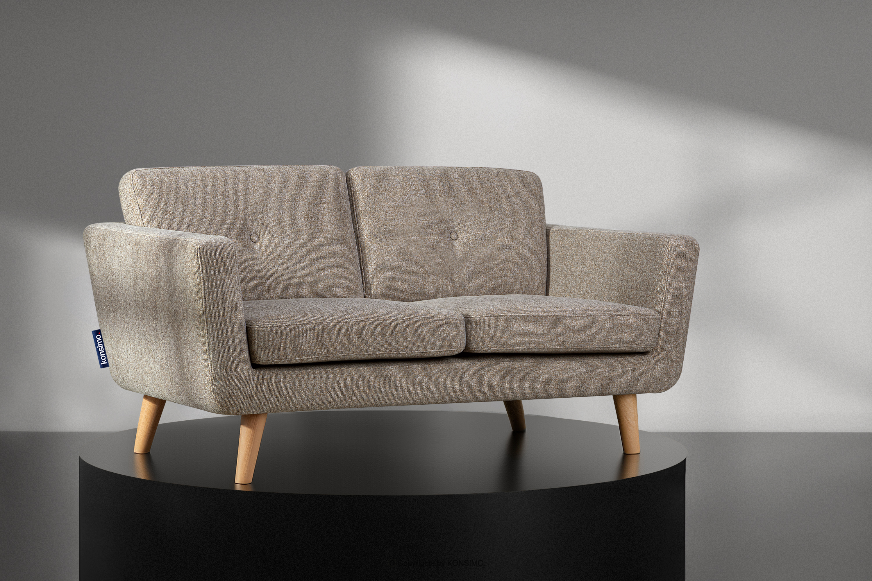 TAGIO II zobacz całą kolekcję Skandynawska sofa 2 osobowa z pikowaniem w tkaninie plecionej jasny brązowy- kolor jasny brązowy
