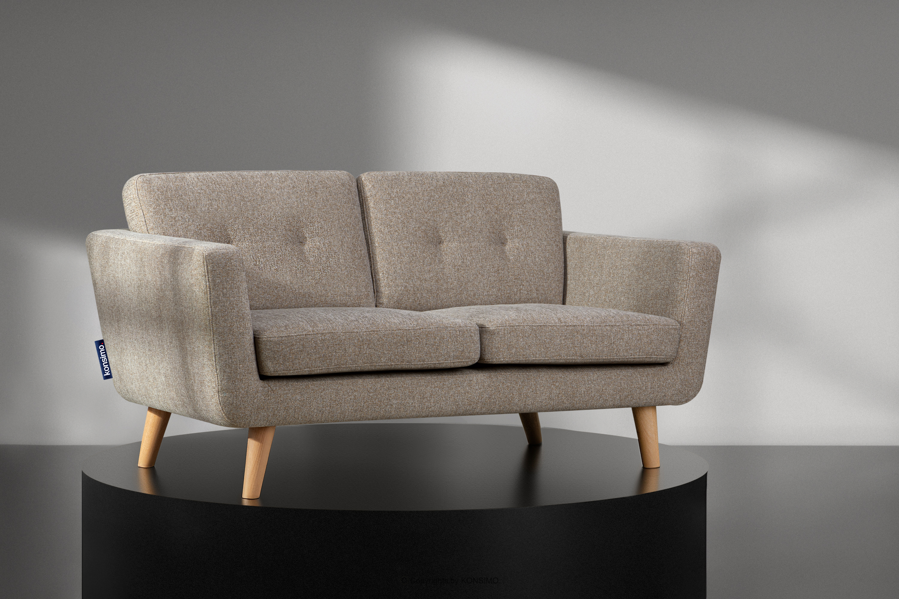 TAGIO II zobacz całą kolekcję Skandynawska sofa dwuosobowa z pikowaniem w tkaninie plecionej jasny brązowy- kolor jasny brązowy