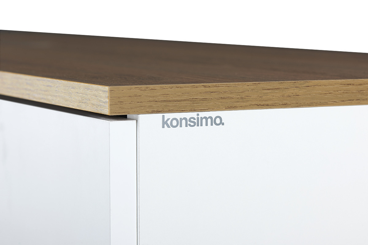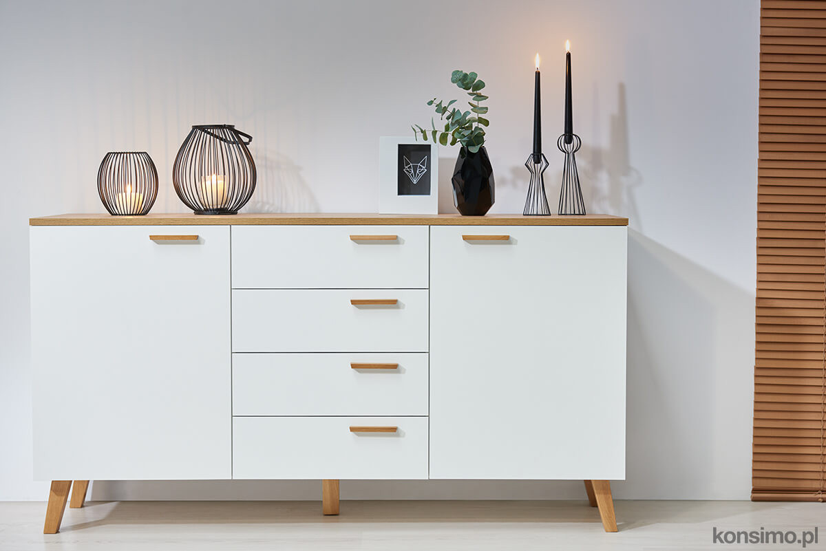 Skandynawska komoda do biura, salonu i sypialni. Idealnie wpasuje się także w wyposażenie pokoi dziecięcych i młodzieżowych. Bez problemu pomieści ubrania, zeszyty i przedmioty codziennego użytku. Komoda to doskonały organizer do wszystkiego. Zastosowany laminat ma zwiększoną odporność na zarysowania, zmiany temperatury oraz jest łatwy w utrzymaniu czystości. Poziome uchwyty ułatwią dostęp do zawartości mebli.