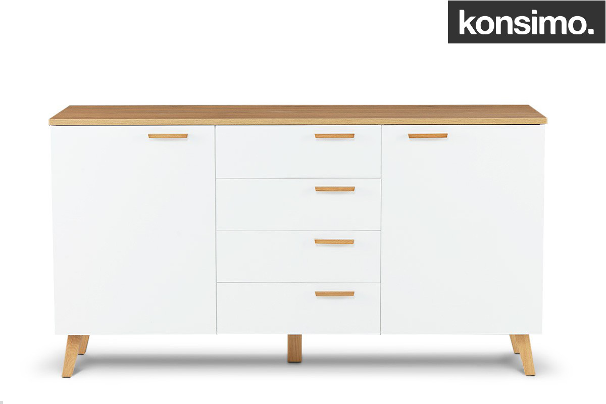 FRISK zobacz całą kolekcję Biała komoda z szufladami skandynawska- kolor biały/dąb naturalny