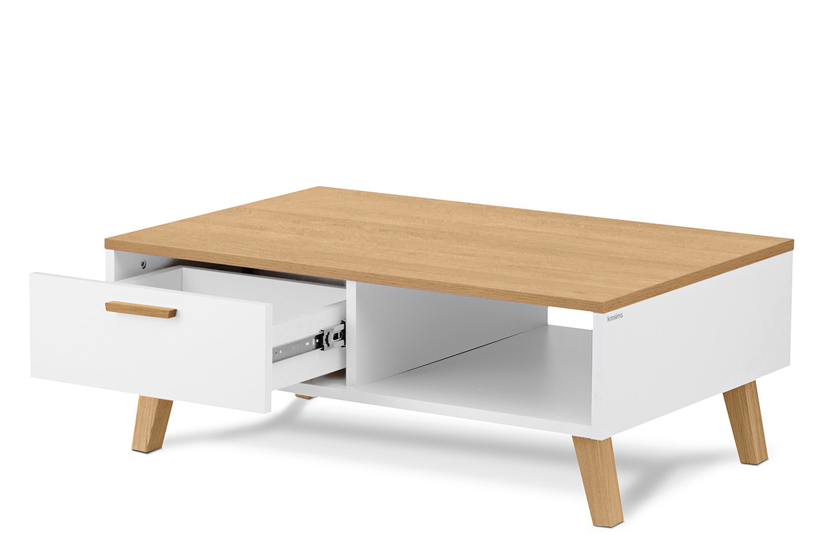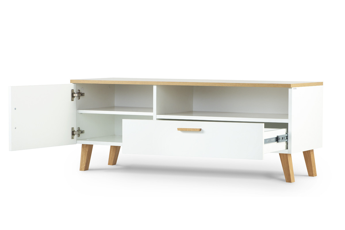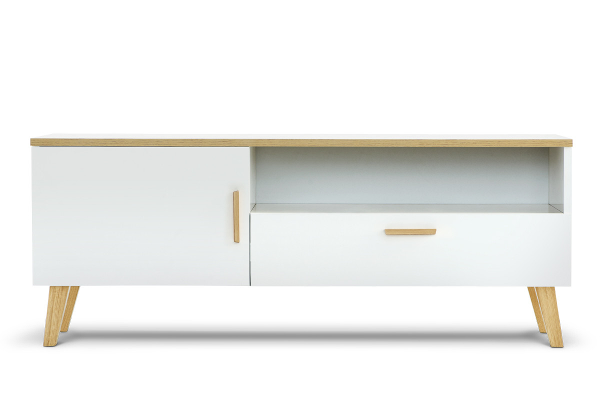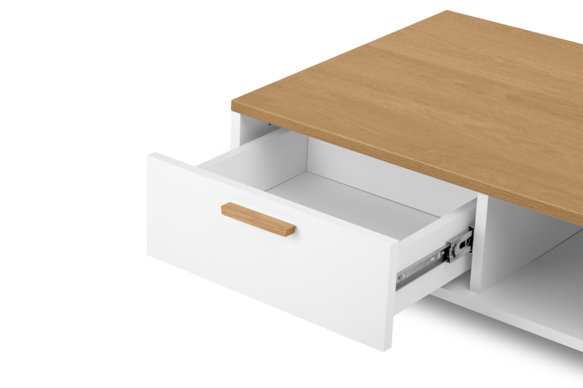 FRISK zobacz całą kolekcję Komoda + Szafka RTV + Stolik kawowy- kolor biały/dąb naturalny