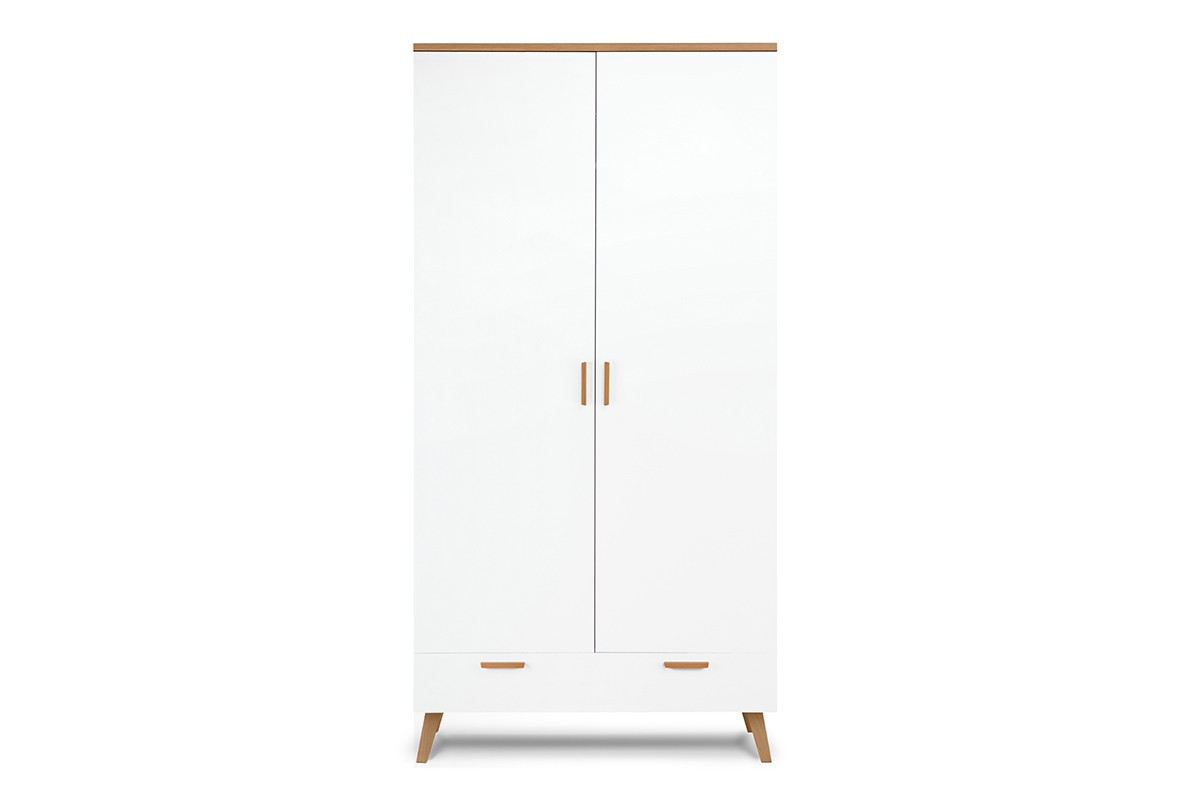 Szafa i komoda posiadają dodatkowe mocowanie tylnej ścianki, które gwarantuje stabilność mebli. Konstrukcję wspierają mocne nóżki z litego drewna. Ten doskonale przemyślany pod kątem codziennych potrzeb komplet sprawdzi się w pokoju nastolatka, biurze i domowym gabinecie, a nawet w hotelach i innych obiektach noclegowych.