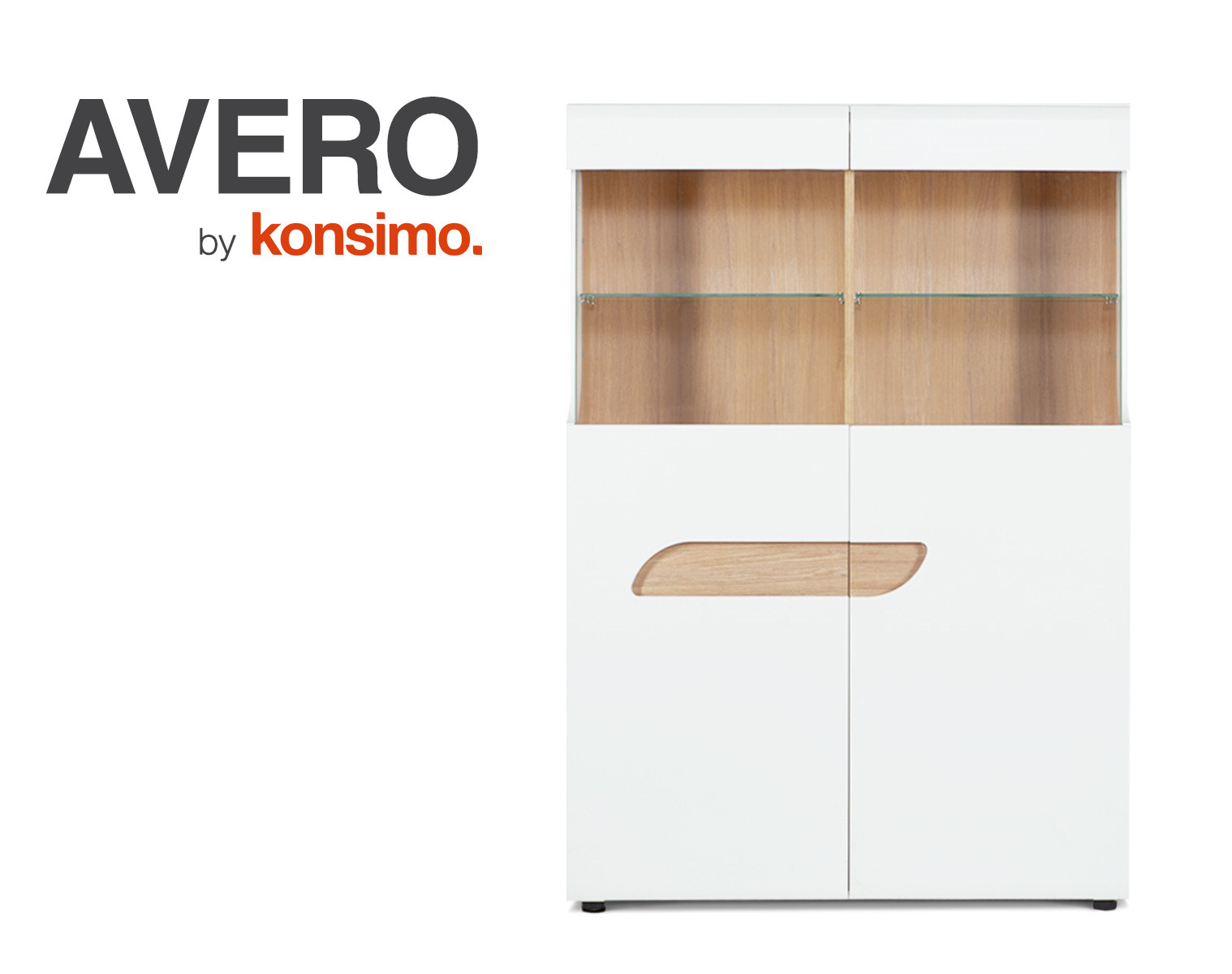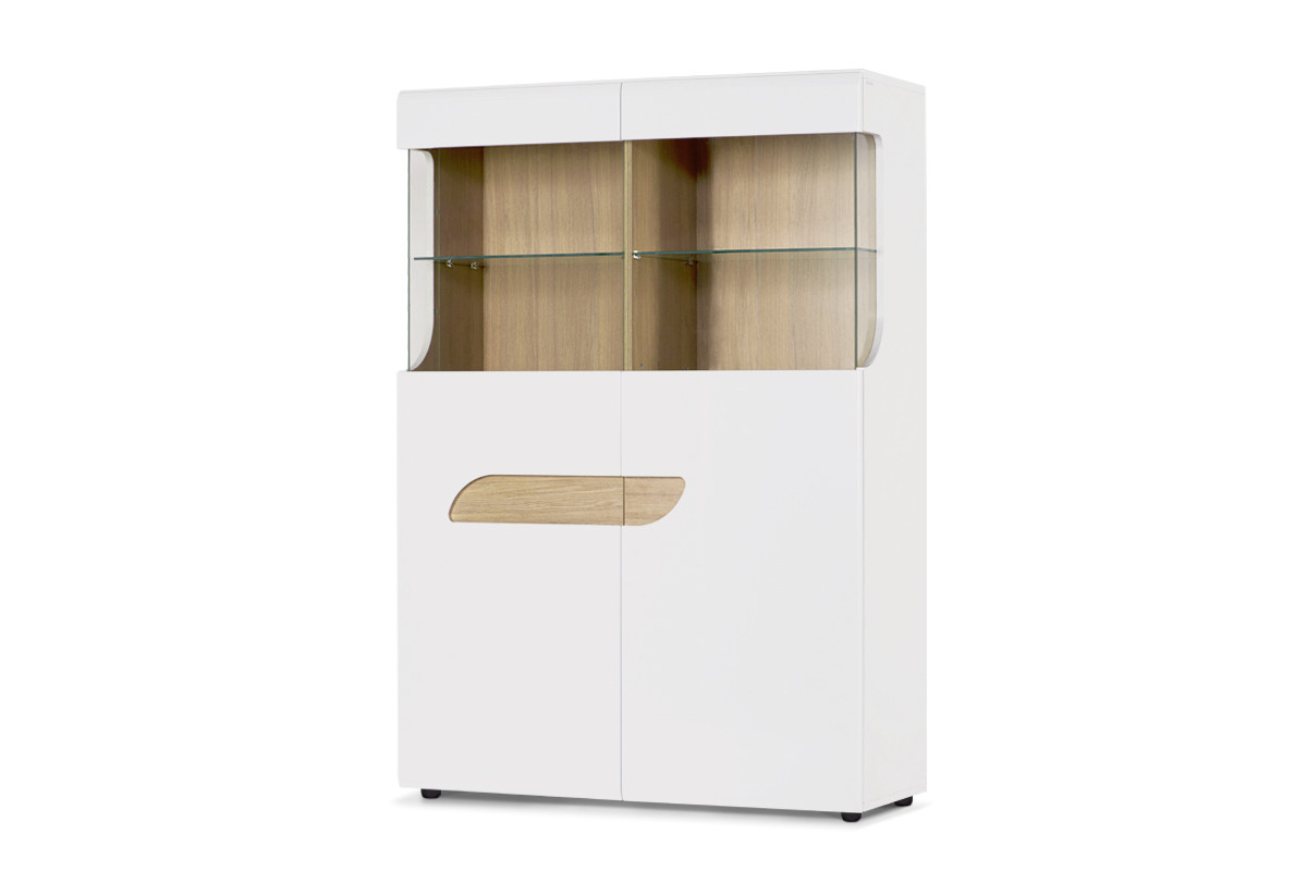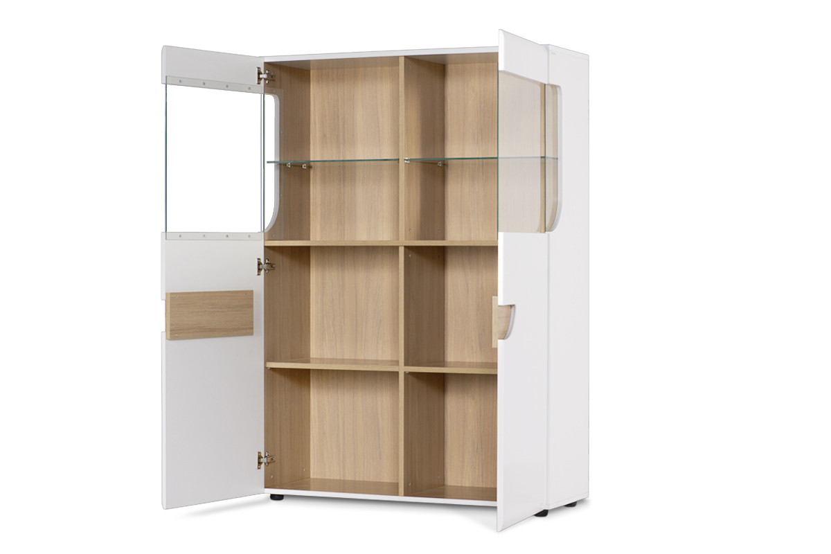 AVERO zobacz całą kolekcję Podwójna witryna w stylu skandynawskim biała- kolor biały matowy/biały połysk/dąb