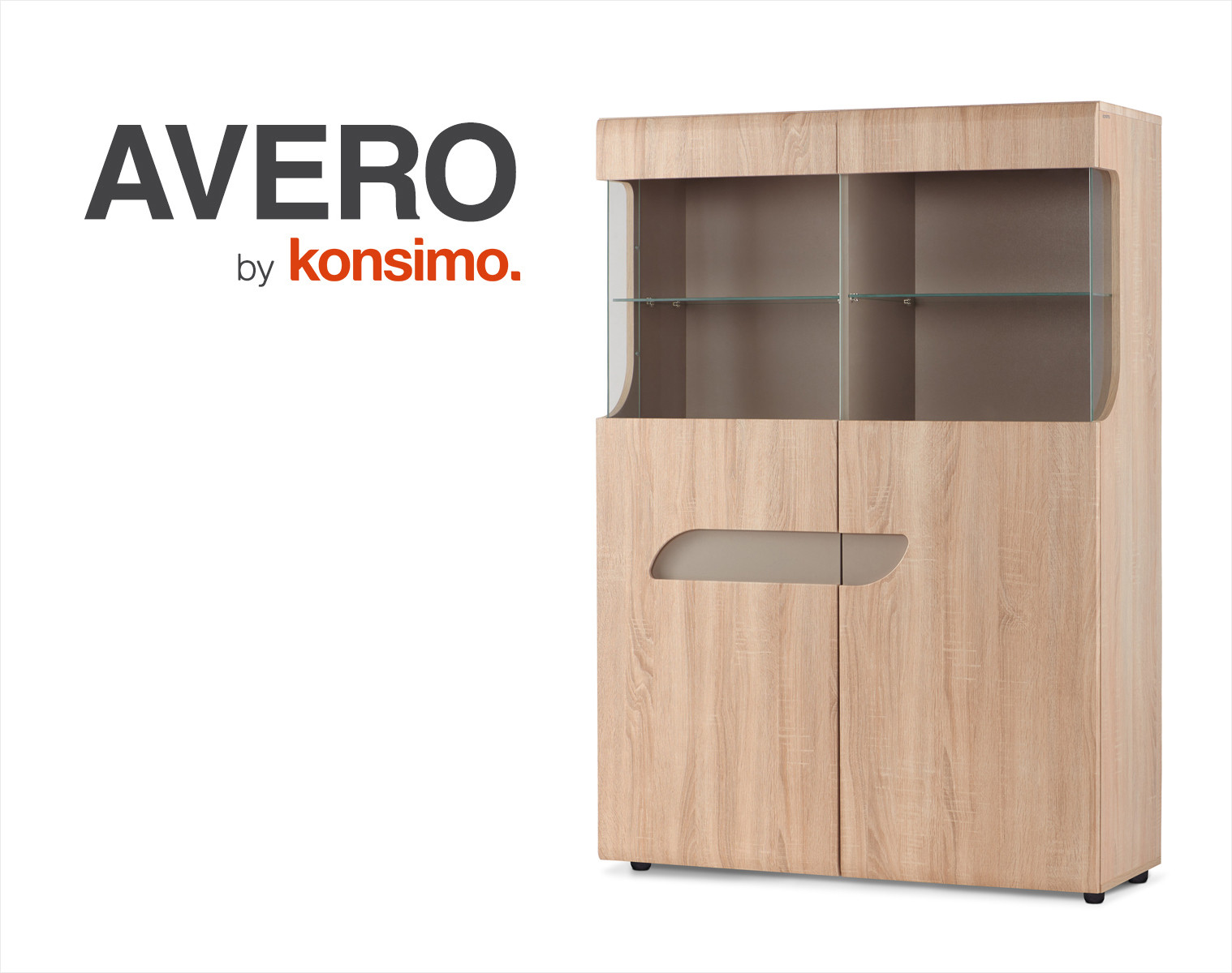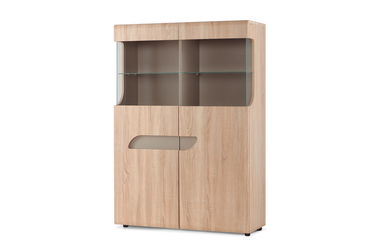Designerska i nowoczesna witryna z kolekcji AVERO, jest idealnym wyborem do stylowego salonu, jadalni czy holu. Duże półki dają dużo przestrzeni, aby pomieścić najróżniejsze przedmioty. Natomiast przeszklenia z hartowanego szkła, pozwolą wyeksponować najbardziej szykowne dekoracje i elementy domowego wyposażenia. Frezowane wcięcia w drzwiach podkreślają nowoczesny styl tej witryny i nadają jej niepowtarzalnego uroku.