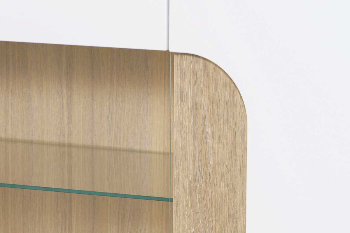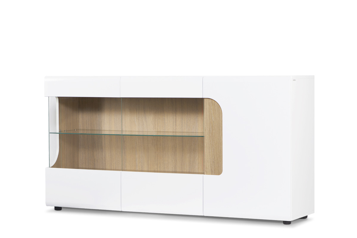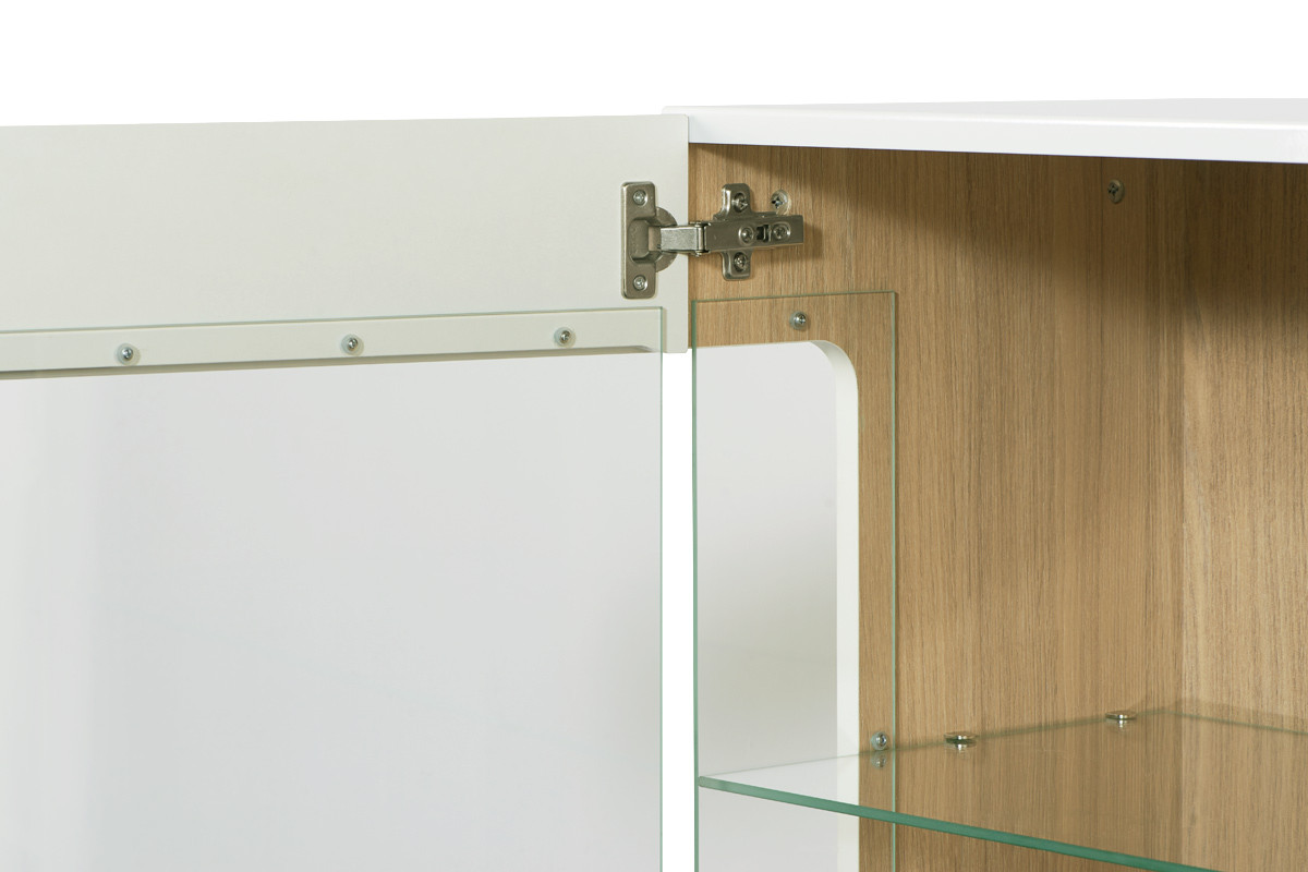 AVERO zobacz całą kolekcję Duża komoda z witryną 165 cm w stylu skandynawskim biała- kolor biały matowy/biały połysk/dąb