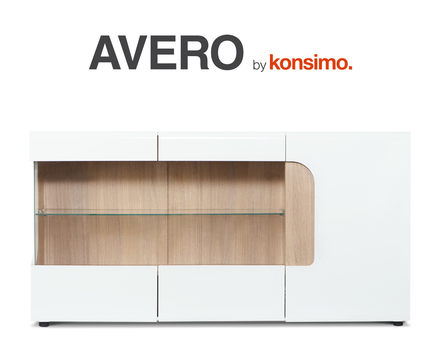 Piękna i nowoczesna komoda z kolekcji AVERO, to funkcjonalny mebel, który sprawdzi się zarówno w salonie czy pokoju dziennym i gościnnym. Ozdobne frezowane wcięcia i przeszkolone drzwi podkreślają nowoczesny styl i modny charakter tej komody. Duża pojemność szafek pozwala przechowywać wiele rzeczy, a dzięki przeszklonym drzwiczkom można wyeksponować najbardziej atrakcyjne elementy wyposażenia.