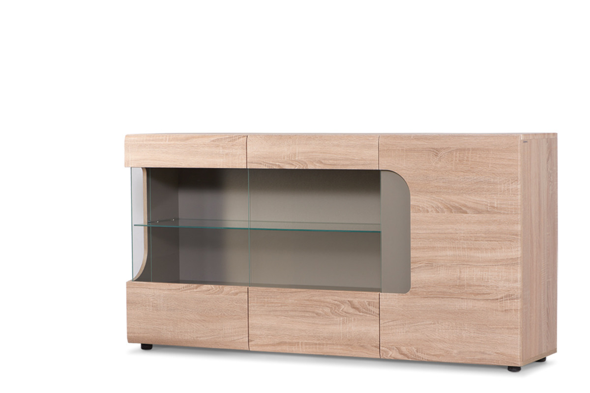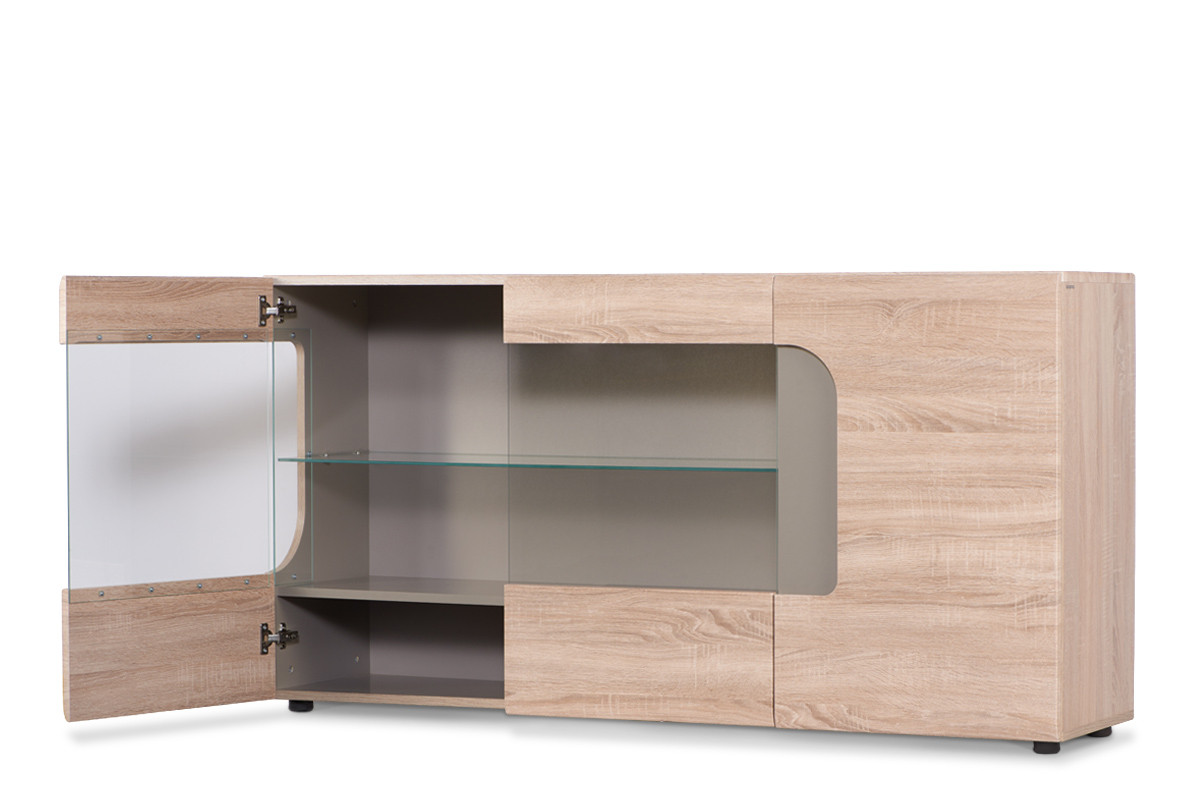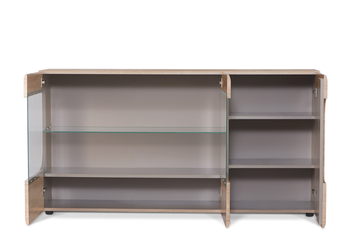 AVERO zobacz całą kolekcję Duża komoda z witryną 165 cm w stylu skandynawskim dąb szary- kolor dąb/szarobeżowy