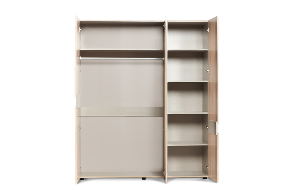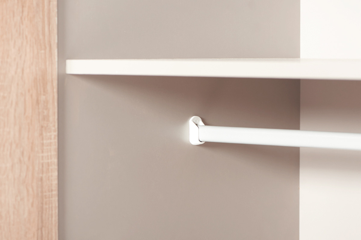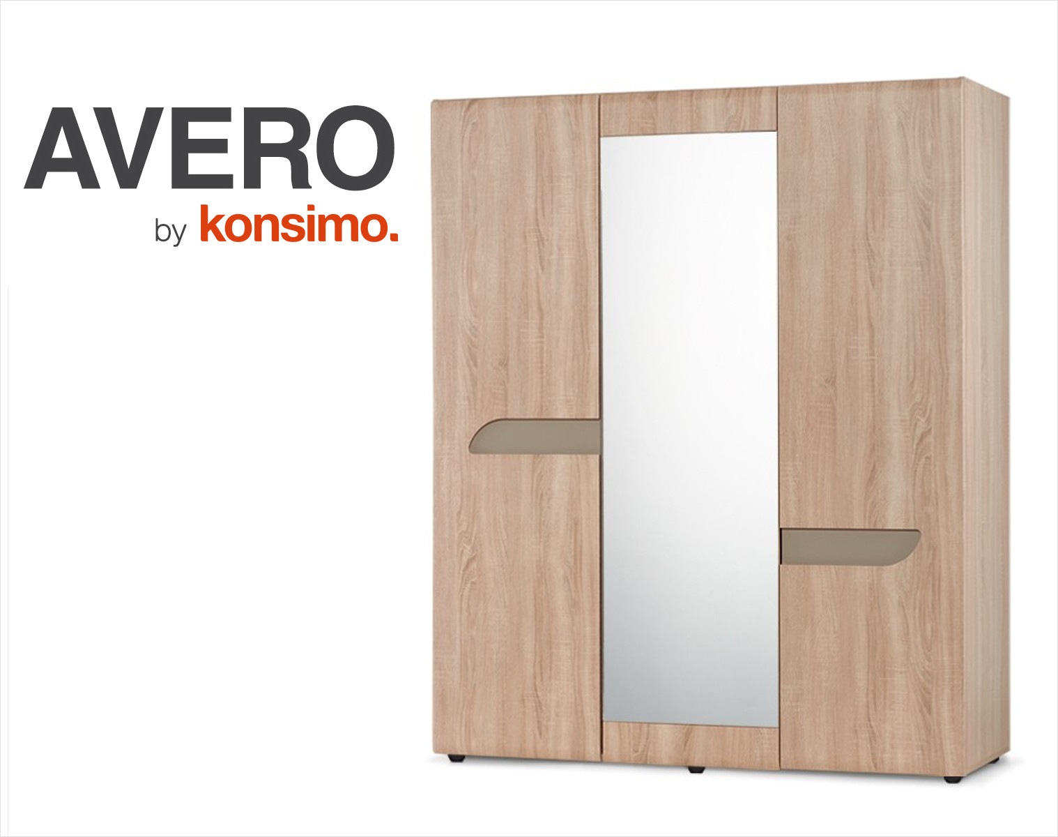 Duża i nowoczesna szafa ubraniowa AVERO doskonale sprawdzi się w sypialni, salonie, pokoju gościnnym czy dziecięcym. Pojemne półki i duży drążek dają wiele przestrzeni na ubrania i inne rzeczy. Drzwi z lustrem i nowoczesnymi frezowanymi wcięciami podkreślają nowoczesny styl szafy oraz jej niepowtarzalny design. Szafa AVERO jest dostępna w wersji pokrytej drewnopodobnym laminatem lub w białym kolorze.