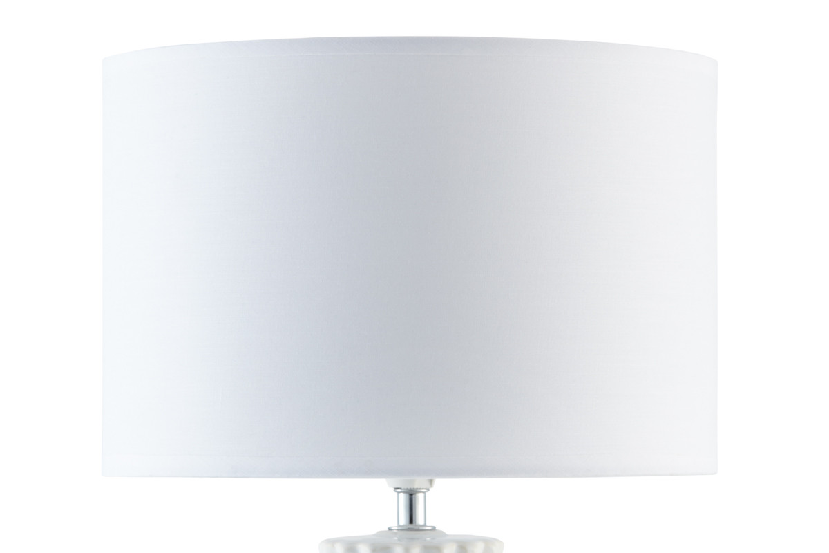 Podstawa wykonana została z ceramiki, natomiast abażur z tkaniny.