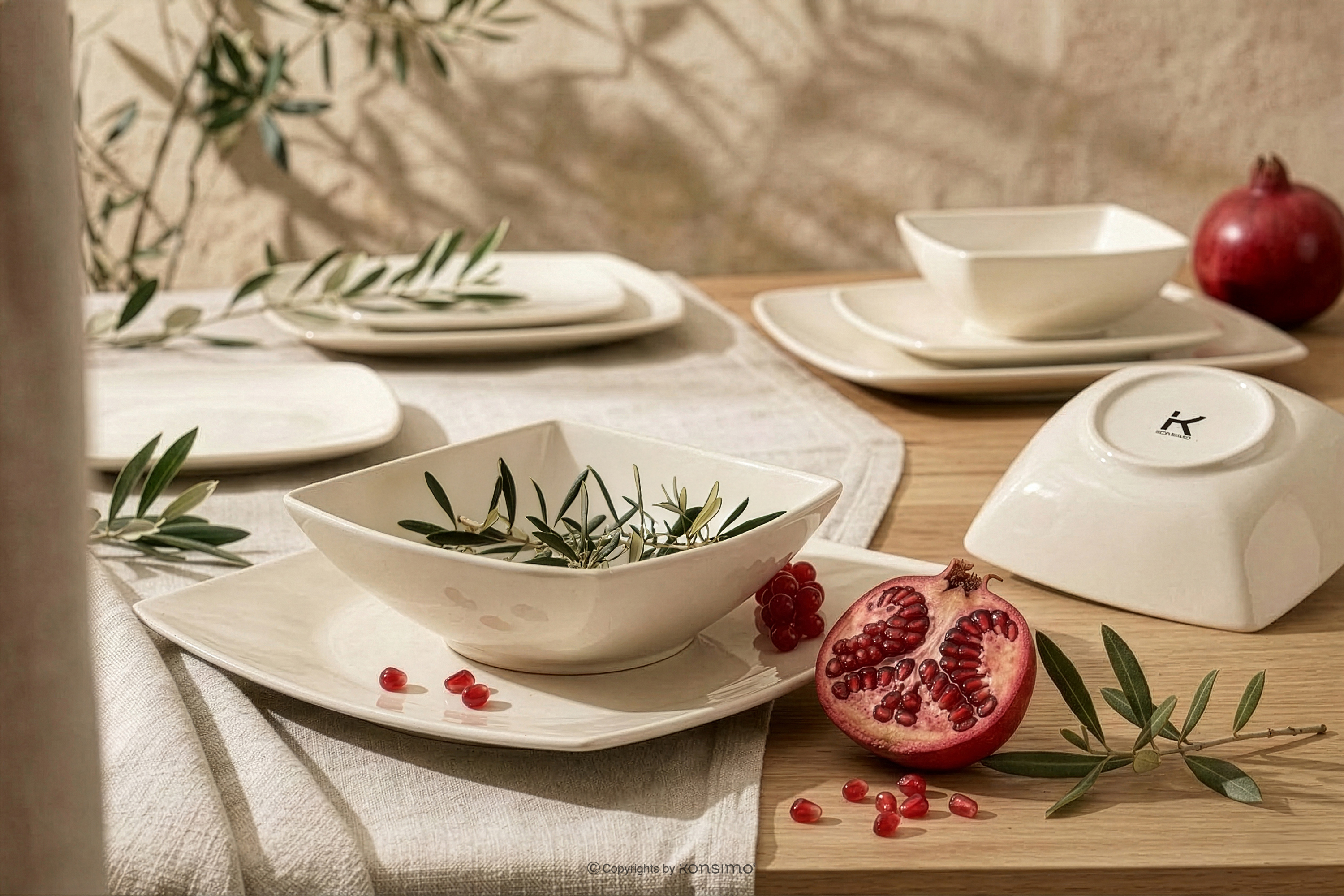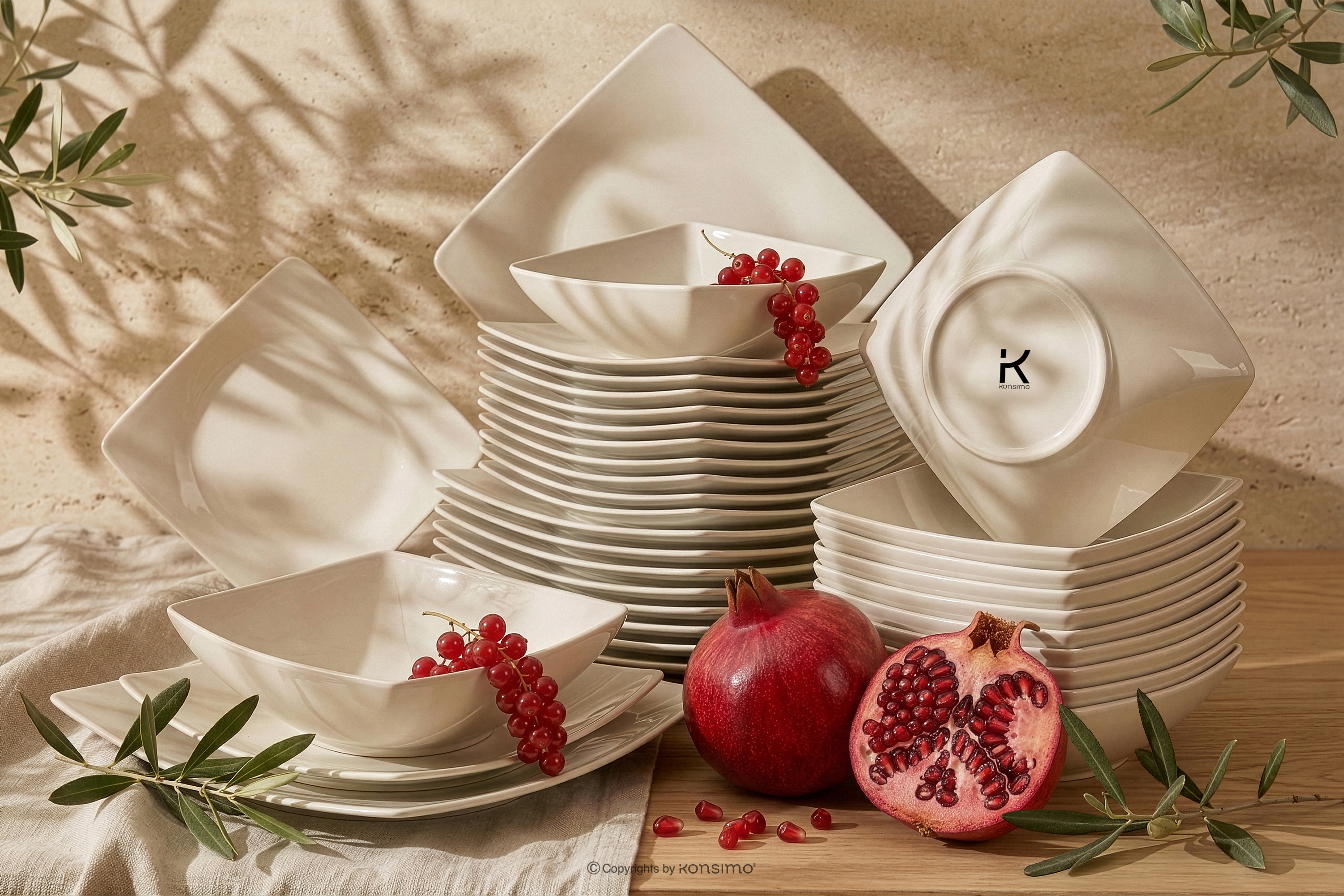 dla produktu Zestaw obiadowy kwadratowy beżowy połysk 12 os. (36el)