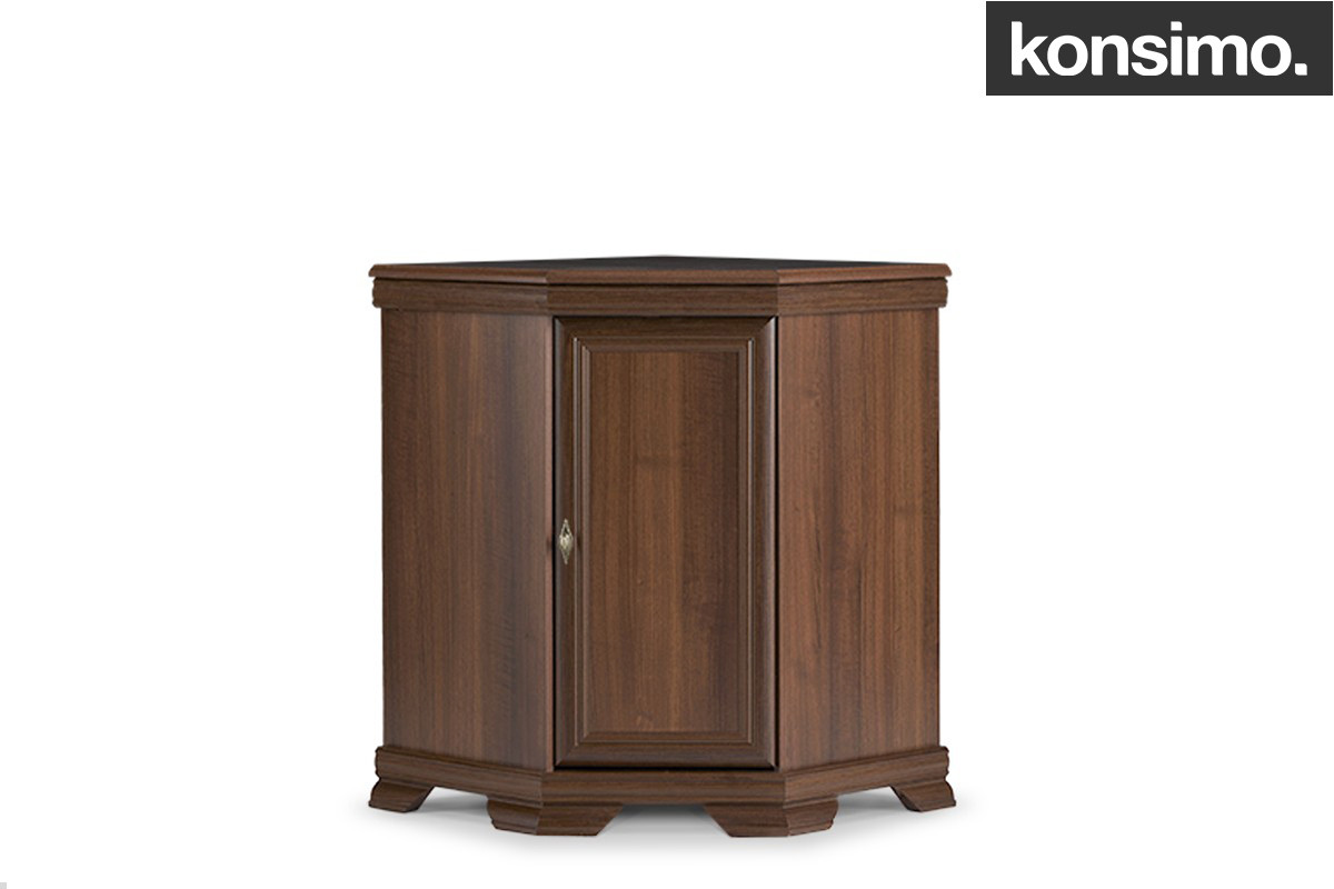 Optymalne wykorzystanie przestrzeni to priorytet nie tylko w małych mieszkaniach. Komoda narożna z kolekcji IMPERIO wykonana w ponadczasowym klasycznym stylu świetnie wpasuje się w róg salonu, pokoju dziennego czy jadalni, zachowując przy tym wizualną subtelność. Rozdzielone praktyczną, solidną półką wnętrze komody pozwala pomieścić nawet duże przedmioty. Całość wykonana została z grubej, drewnopodobnej płyty, która z powodzeniem znosi nawet większy ciężar.
