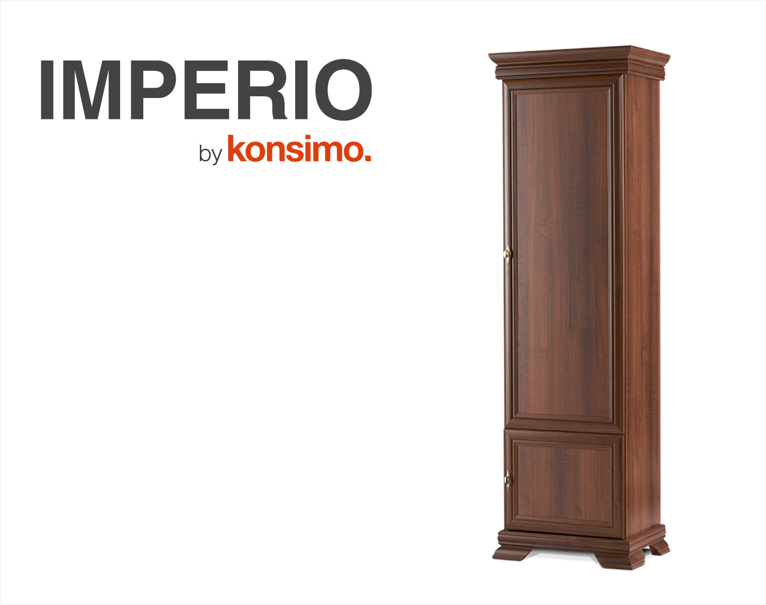 Zaprojektowany przez najlepszych specjalistów Konsimo, regał z kolekcji IMPERIO powstał z myślą o potrzebie przechowywania. Solidne półki wykonane z grubej płyty z powodzeniem znoszą nawet duży ciężar. Dostępna przestrzeń pozwala pomieścić ubrania i inne przedmioty codziennego użytku. Dzięki specjalnemu wzmocnieniu tylnej ścianki regał jest wytrzymały i stabilny. Wysokiej jakości płyta pokryta laminatem w strukturze drewna doskonale imituje lite drzewo.