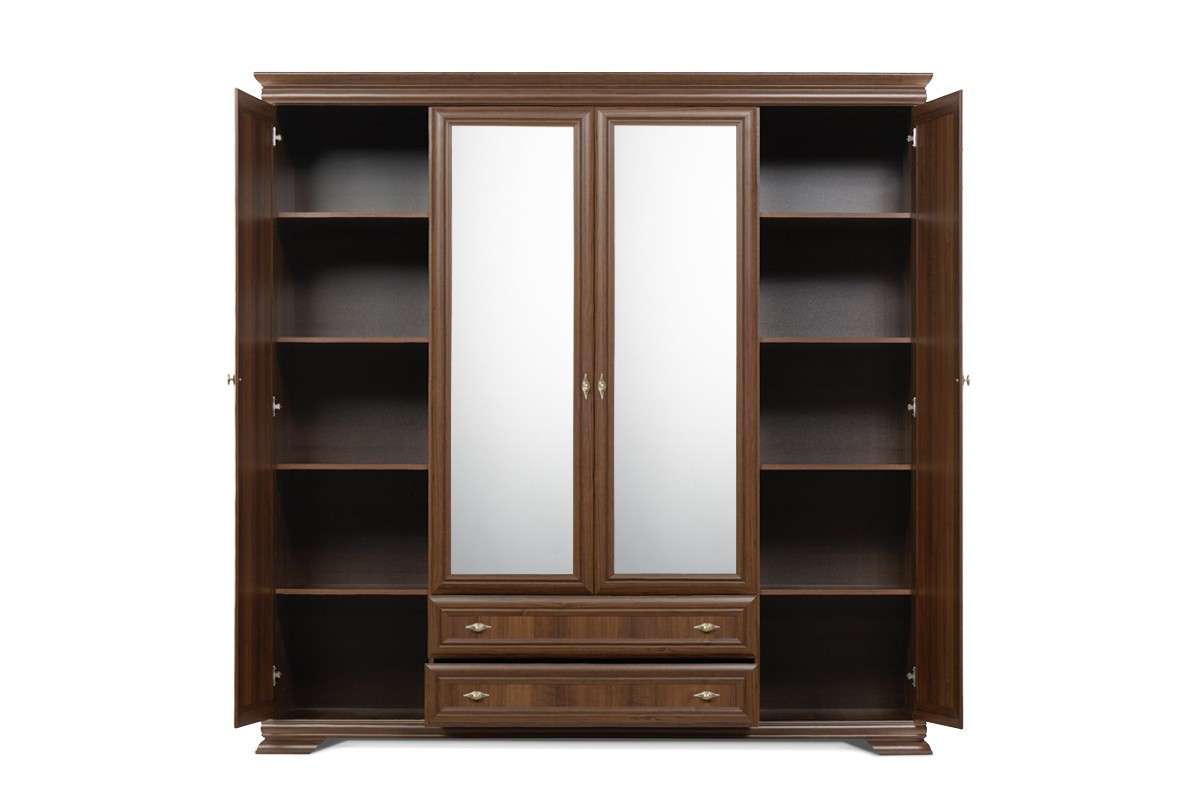Pokochają go zwolennicy klasycznych mebli i praktycznej elegancji – zestaw składający się z łóżka ze stelażem oraz szafy z kolekcji IMPERIO spełni oczekiwania nawet najbardziej wymagających. Wytrzymała konstrukcja została wzmocniona specjalnym mocowaniem tylnej ścianki. Osiem solidnych półek i dwie szuflady zapewnią mnóstwo miejsca na ubrania i przedmioty codziennego użytku. Szeroka szafa z drążkiem na wieszaki z powodzeniem przechowa elegancką odzież, a funkcjonalne lustro stanie się dodatkowym elementem przydatnym na co dzień.