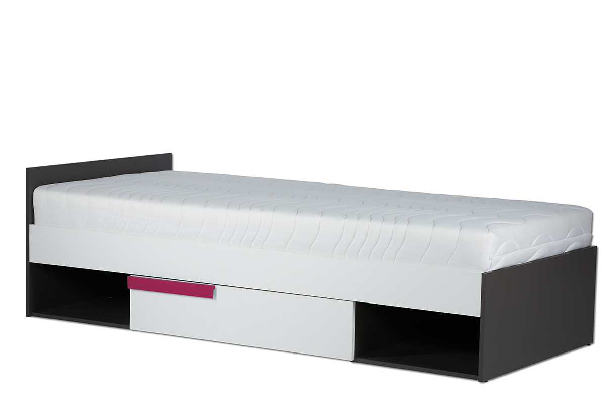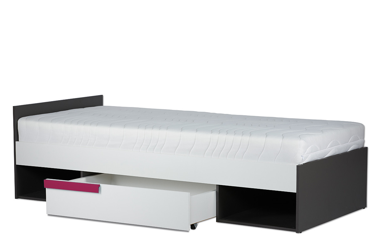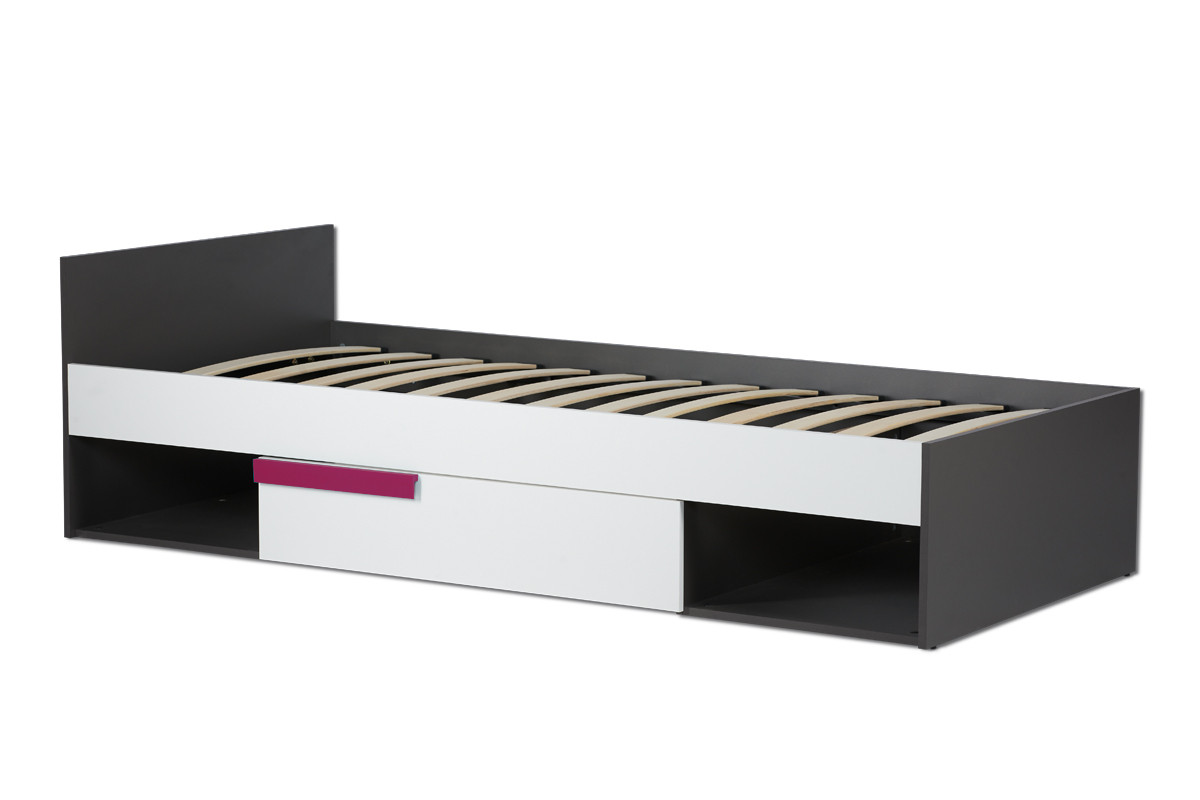 SHIBU zobacz całą kolekcję Nowoczesne łóżko dla dziecka ze stelażem- kolor grafit/biały/różowy