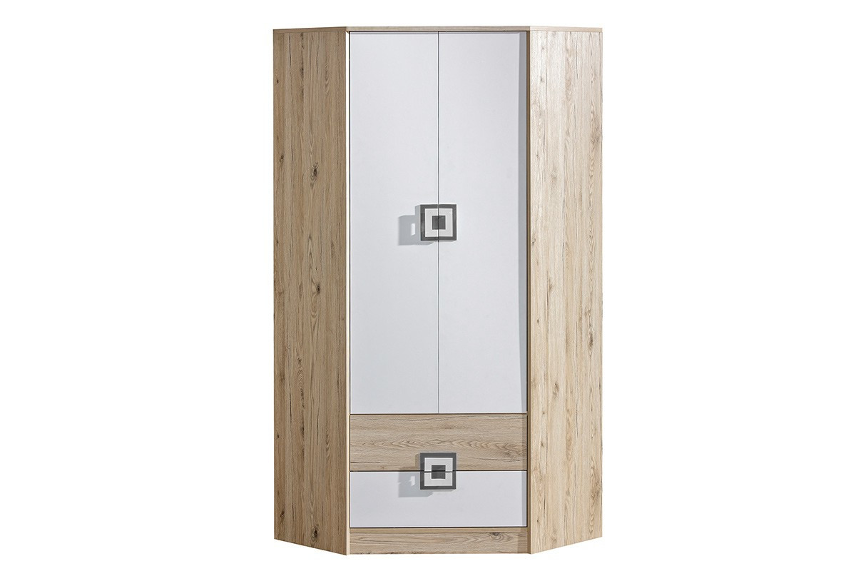 dla produktu Kolorowy zestaw mebli do pokoju dziecięcego 4 elementy szafa narożna biały / jasny dąb / szary