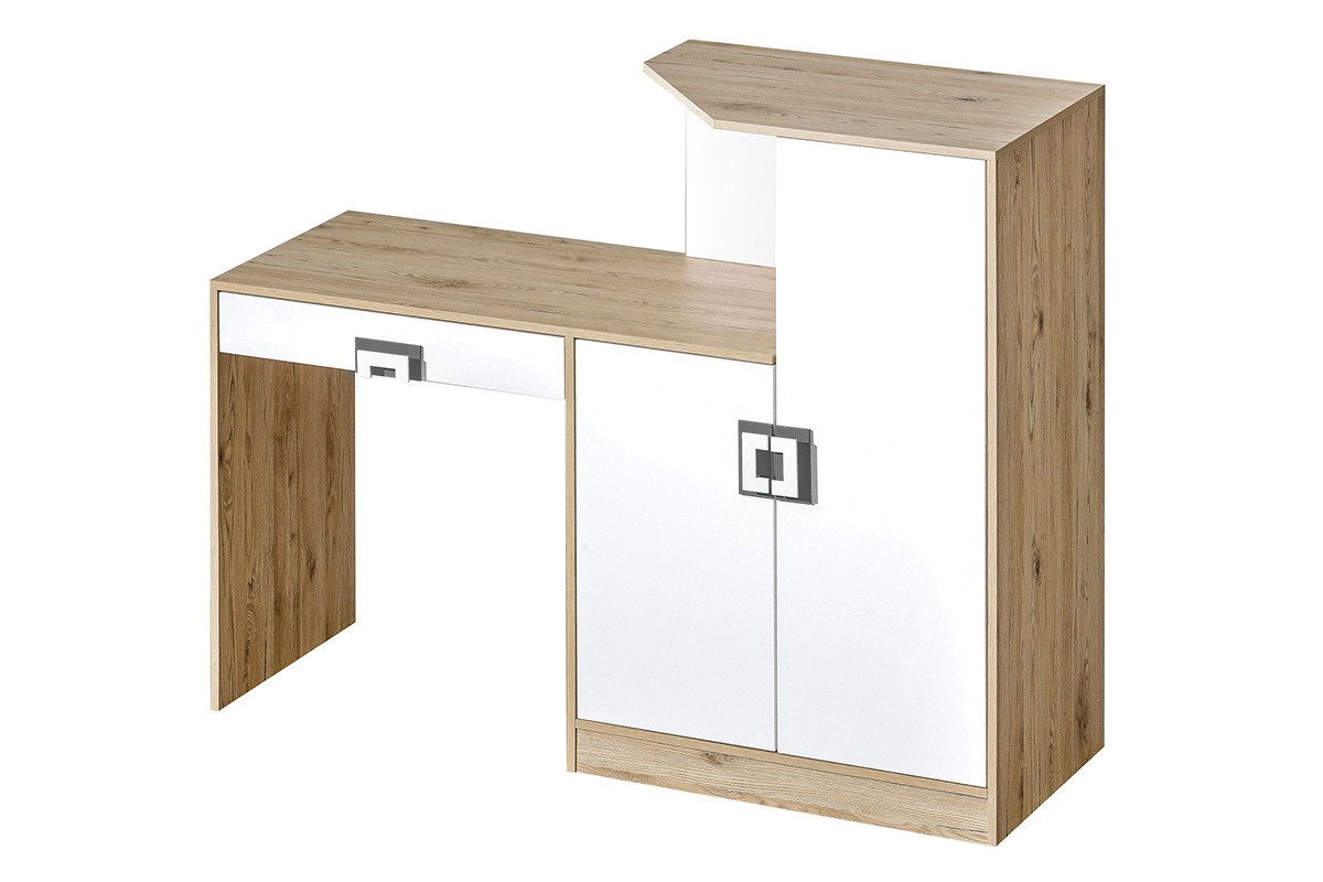 CAMBI zobacz całą kolekcję Kolorowy zestaw mebli do pokoju dziecięcego 4 elementy szafa narożna biały / jasny dąb / szary- kolor biały/jasny dąb/szary