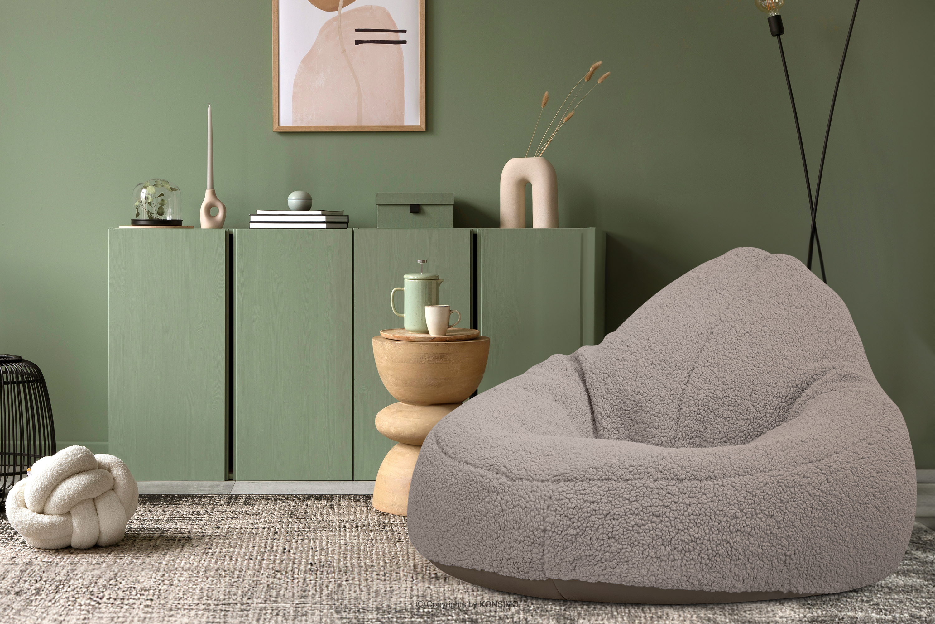 COSMO zobacz całą kolekcję Puf worek w tkaninie baranek jasny brązowy- kolor jasny brązowy