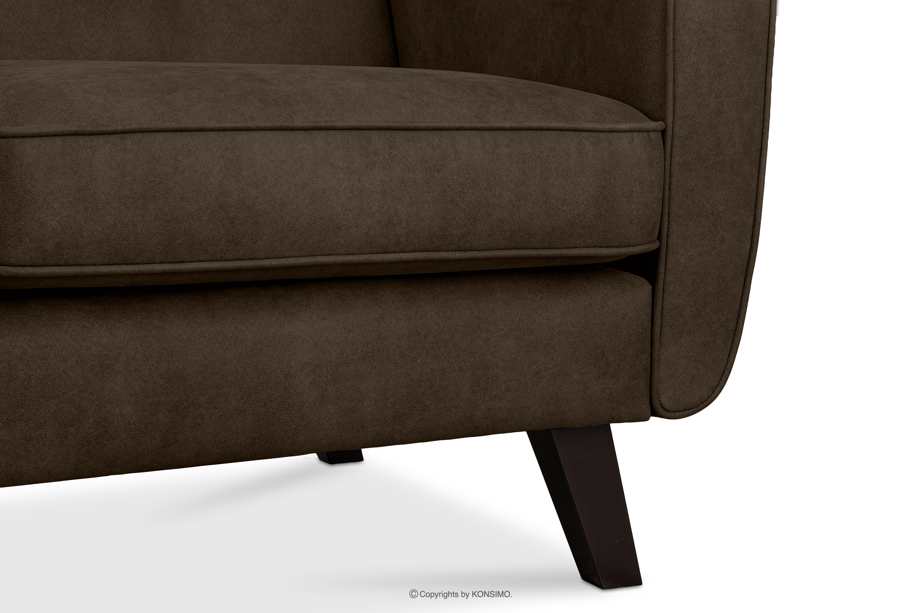 Sofa 2 loft w tkaninie skóropodobnej ciemny brązowy z kolekcji TERSO zaprojektowana została z myślą o komforcie w luksusowych wnętrzach. Wysokiej jakości tkanina skóropodobna nie tylko świetnie się prezentuje, ale też jest wyjątkowo odporna na ścieranie i łatwa do utrzymania w czystości. Wygodne siedzisko, odpowiednio wyprofilowane oparcie i boczki na optymalnej wysokości zapewnią domownikom i gościom wysoki komfort wypoczynku.