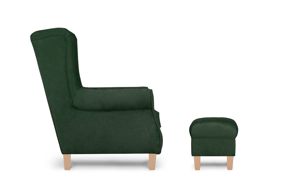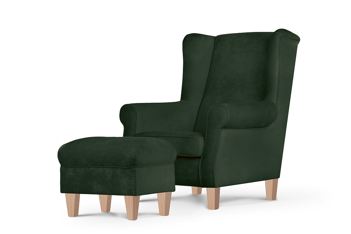 MILES zobacz całą kolekcję Podnóżek butelkowa zieleń welur drewniane nóżki- kolor zielony/buk