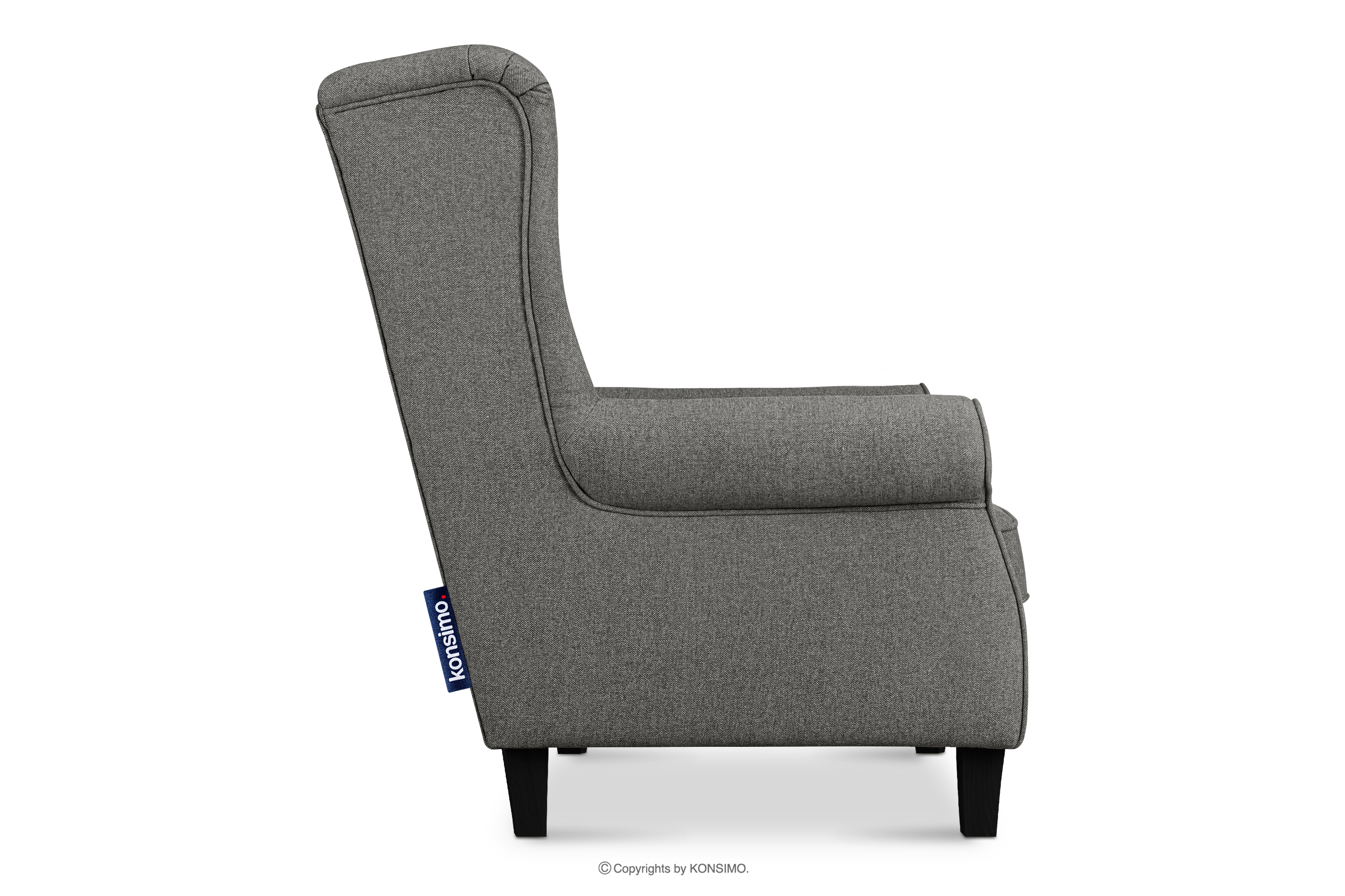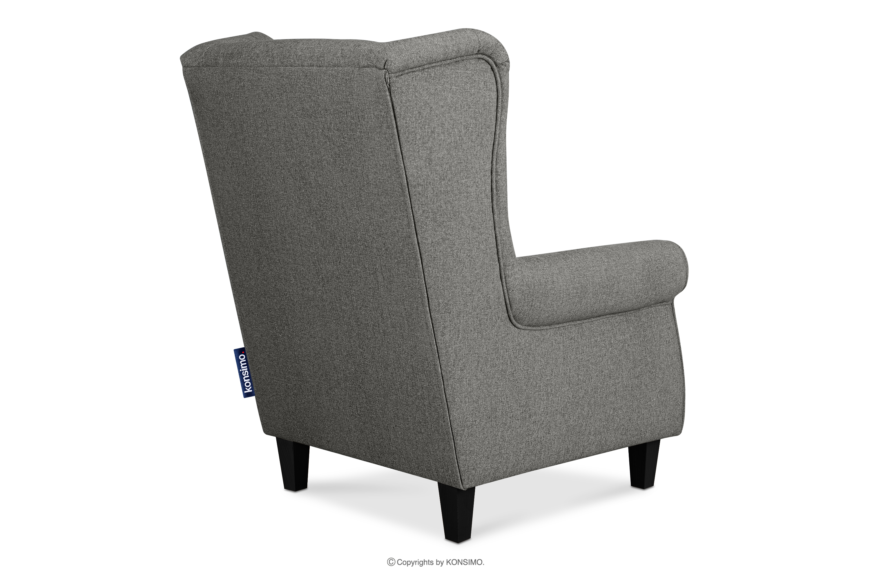 MILES zobacz całą kolekcję Fotel uszak vintage na drewnianych nóżkach szary/czarny- kolor szary/czarny