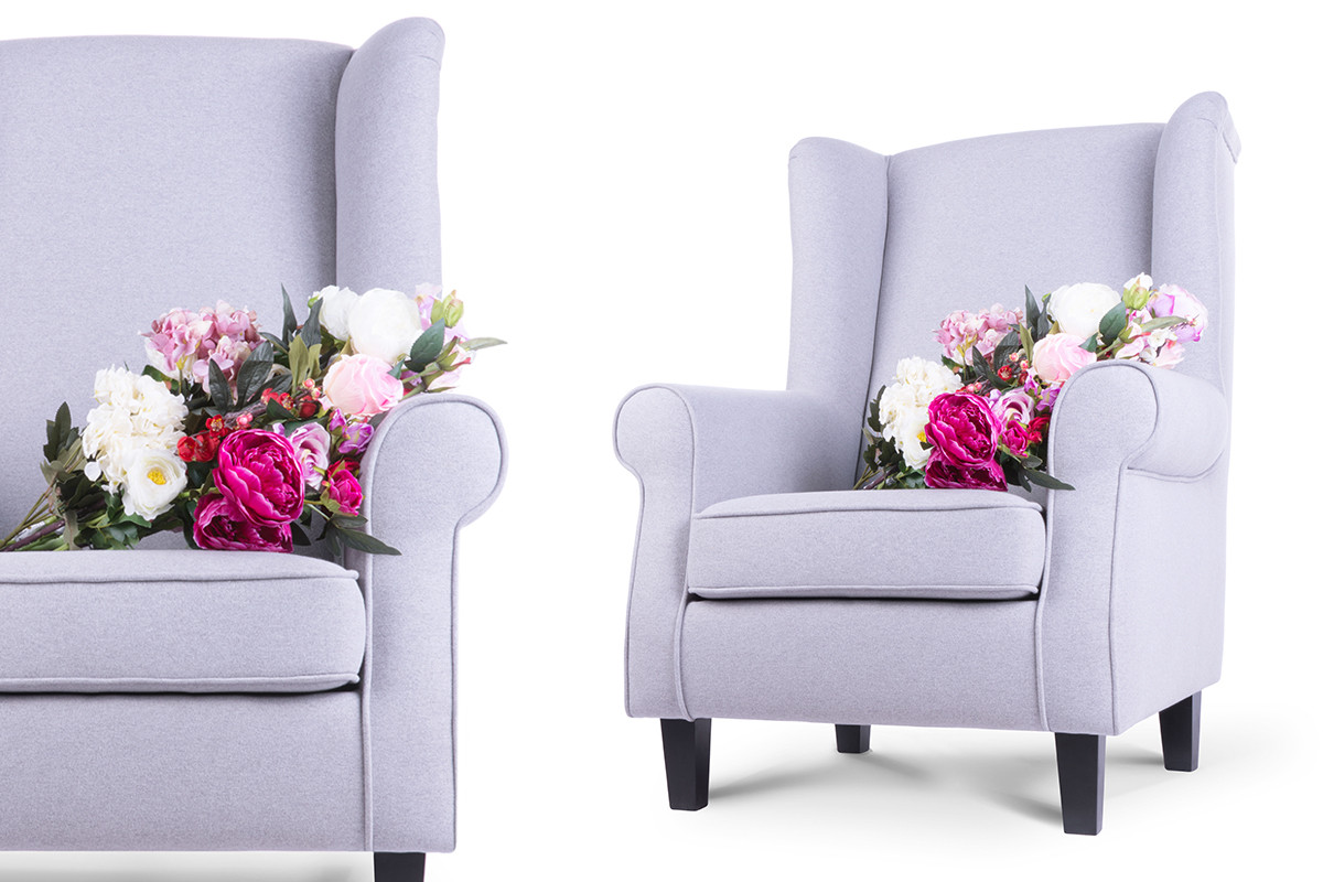 MILES zobacz całą kolekcję Fotel uszak szary czarne nóżki- kolor jasny szary