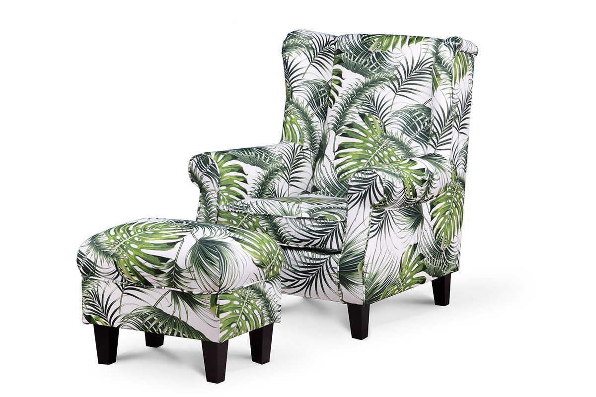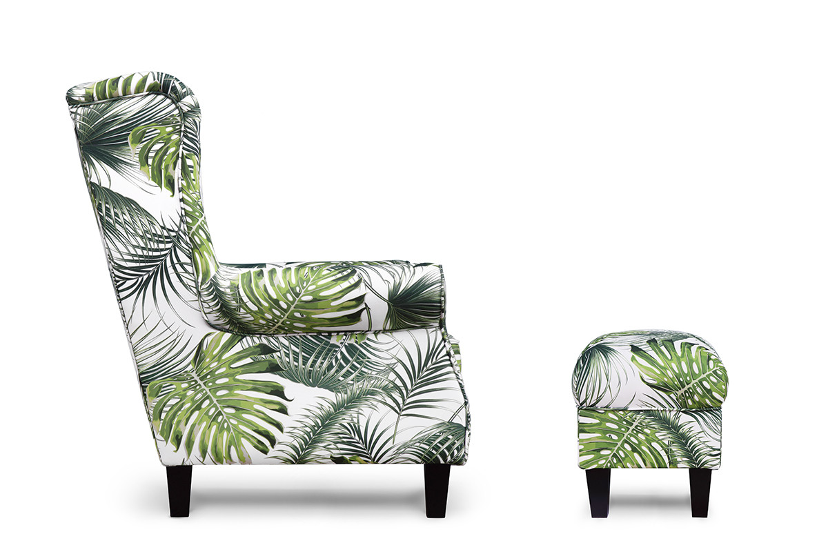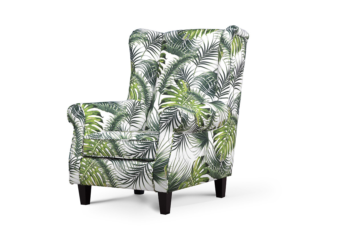 MILES zobacz całą kolekcję Fotel uszak monstery czarne nóżki- kolor biały/zielony
