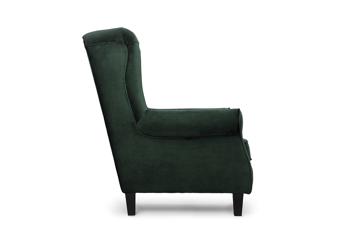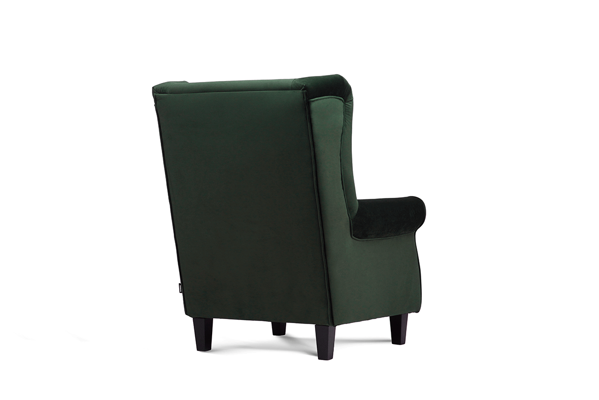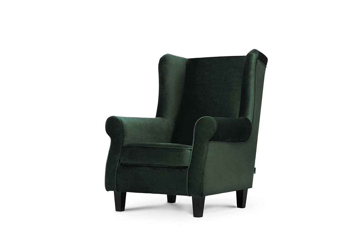 MILES zobacz całą kolekcję Fotel uszak butelkowa zieleń welur czarne nóżki- kolor zielony