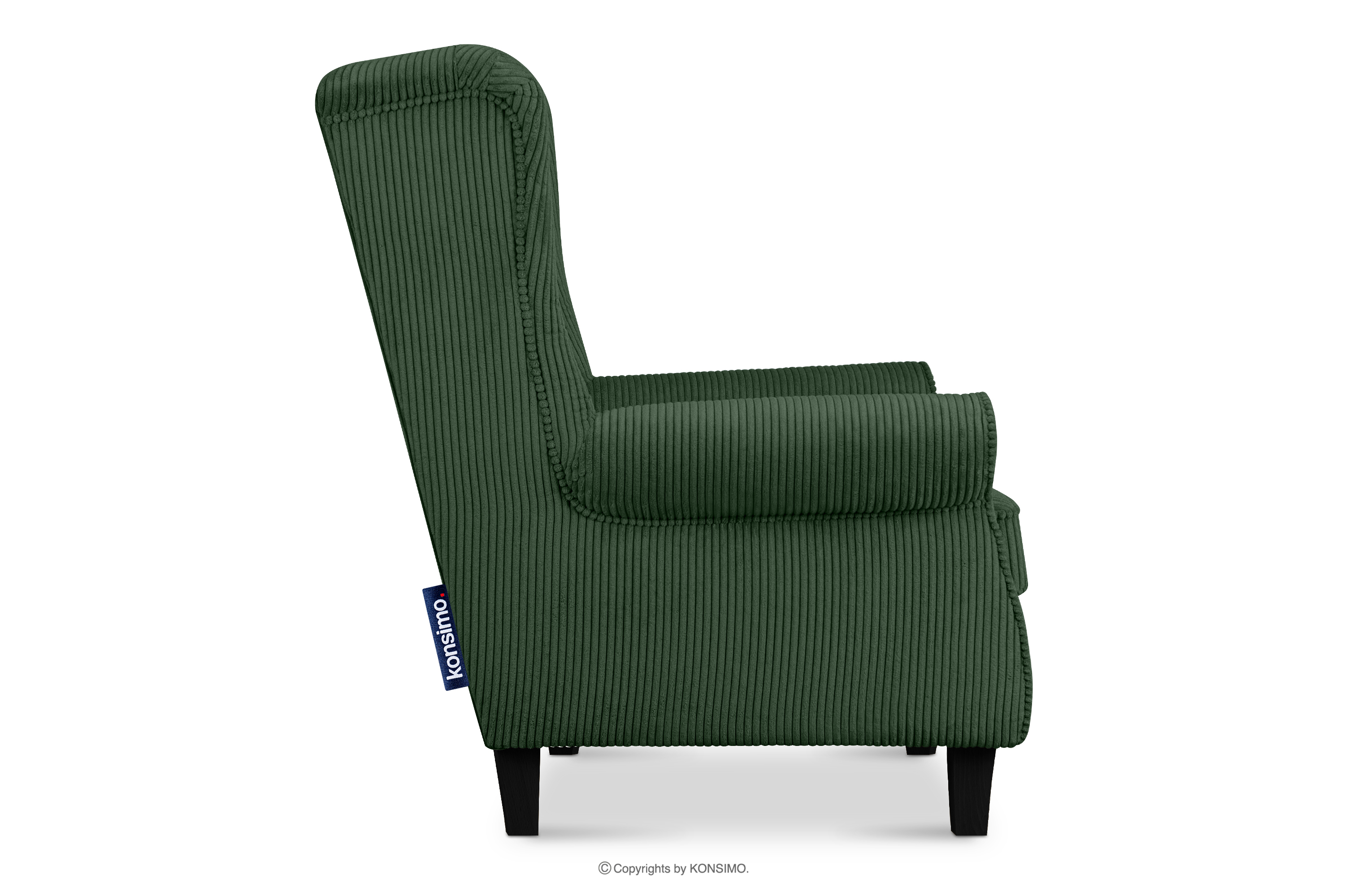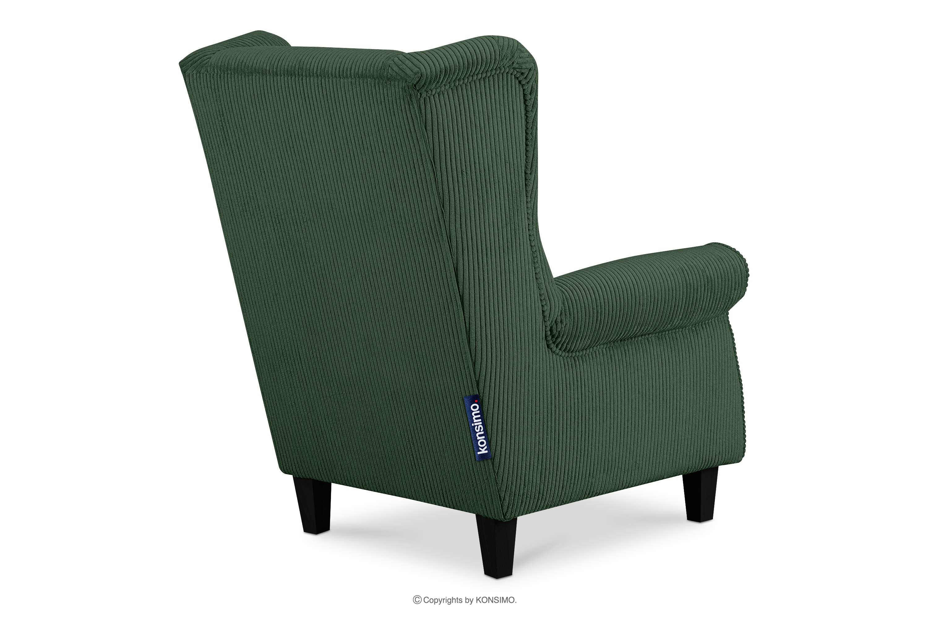 MILES zobacz całą kolekcję Fotel uszak sztruks na drewnianych nóżkach ciemny zielony/czarny- kolor ciemny zielony/czarny