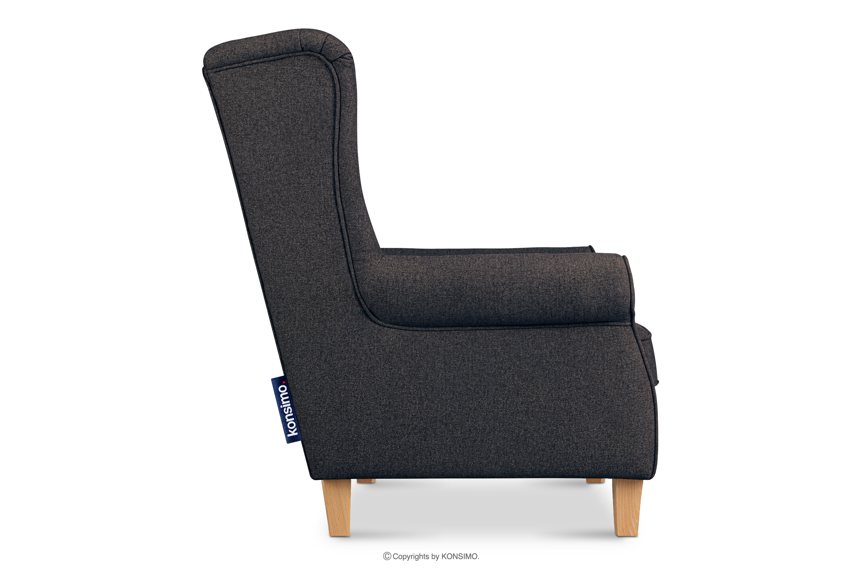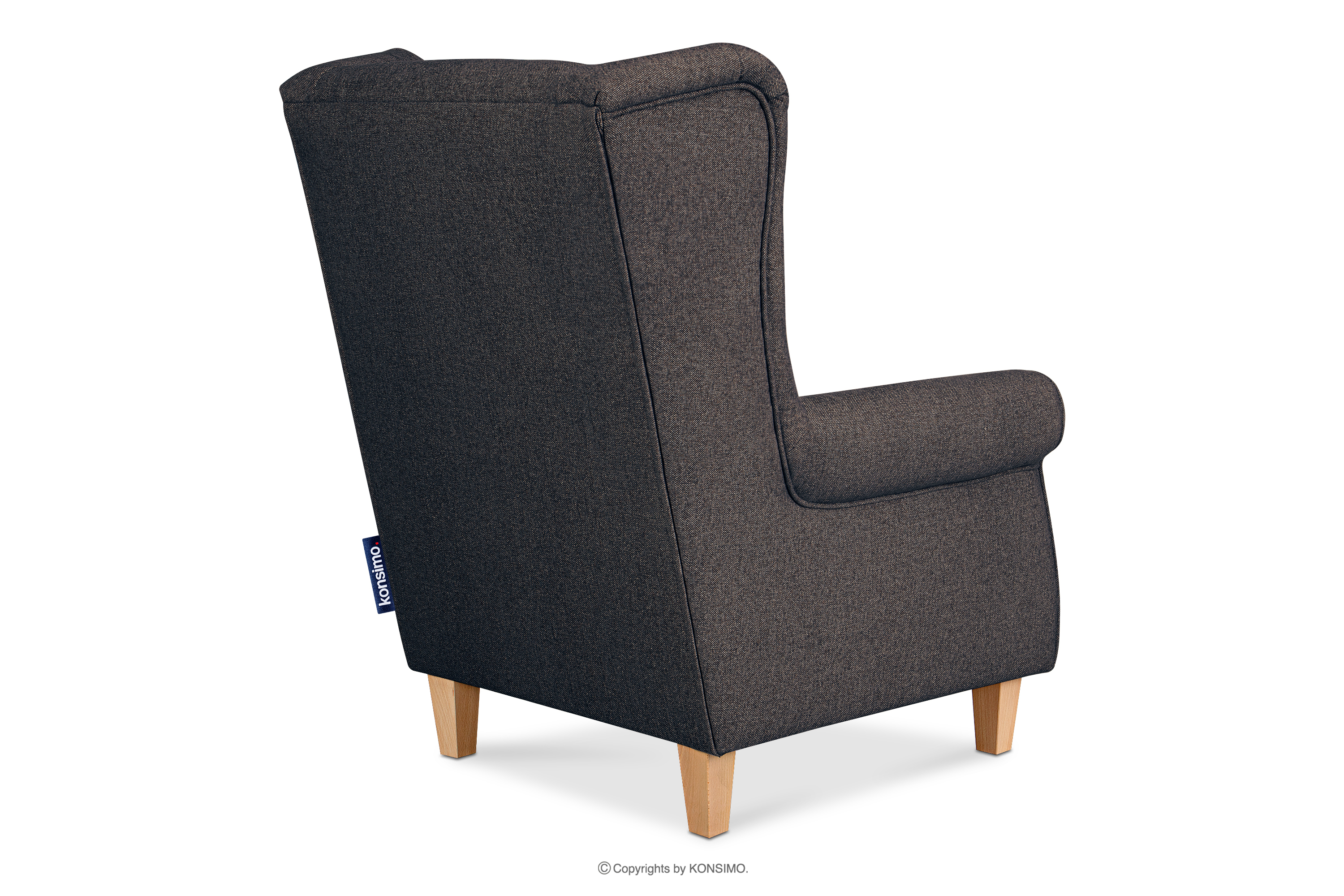 MILES zobacz całą kolekcję Fotel uszak na drewnianych nóżkach granatowy/brązowy/buk- kolor granatowy/brązowy/buk