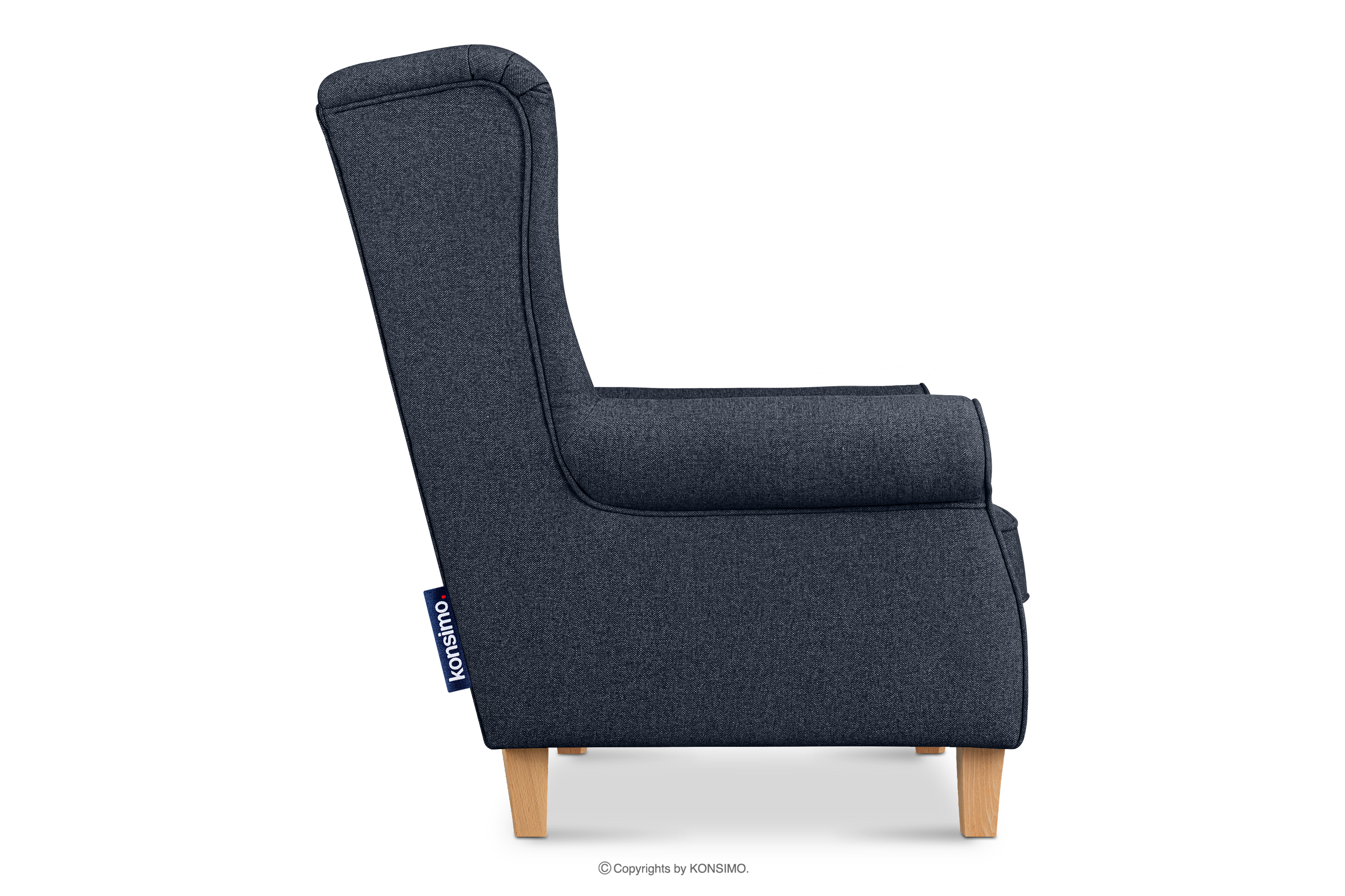 Fotel uszak na drewnianych nóżkach granatowy/buk MILES - kolor granatowy/buk