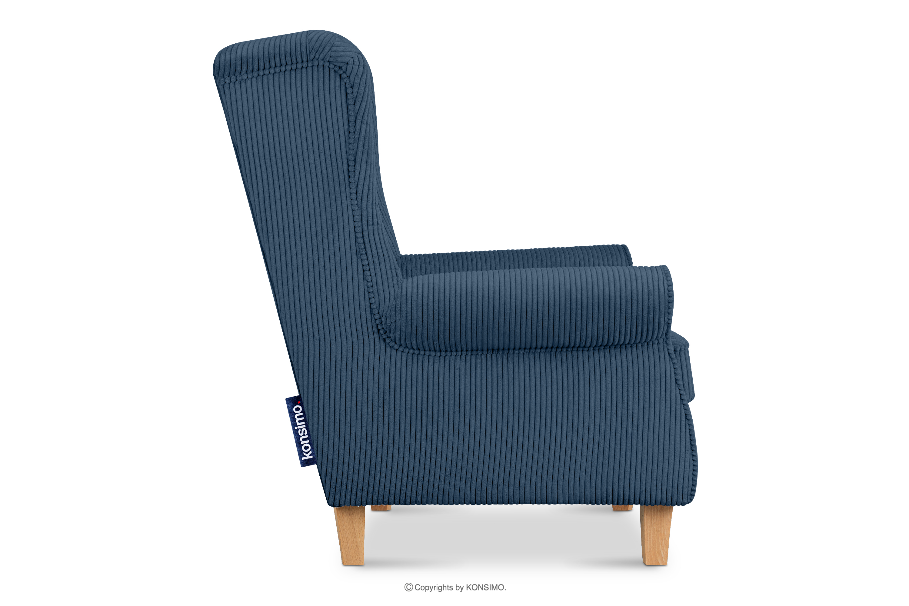 dla produktu Fotel uszak sztruks na drewnianych nóżkach ciemny niebieski/buk