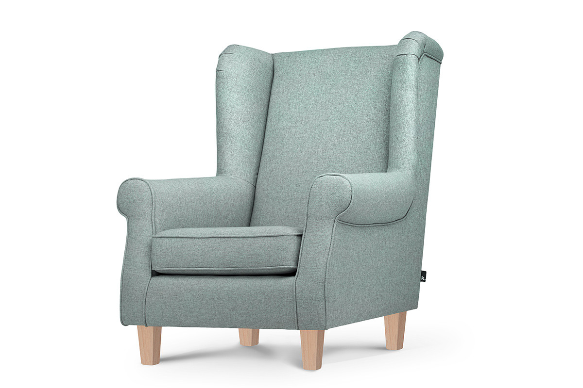 MILES zobacz całą kolekcję Fotel uszak zielony drewniane nóżki- kolor miętowy/buk