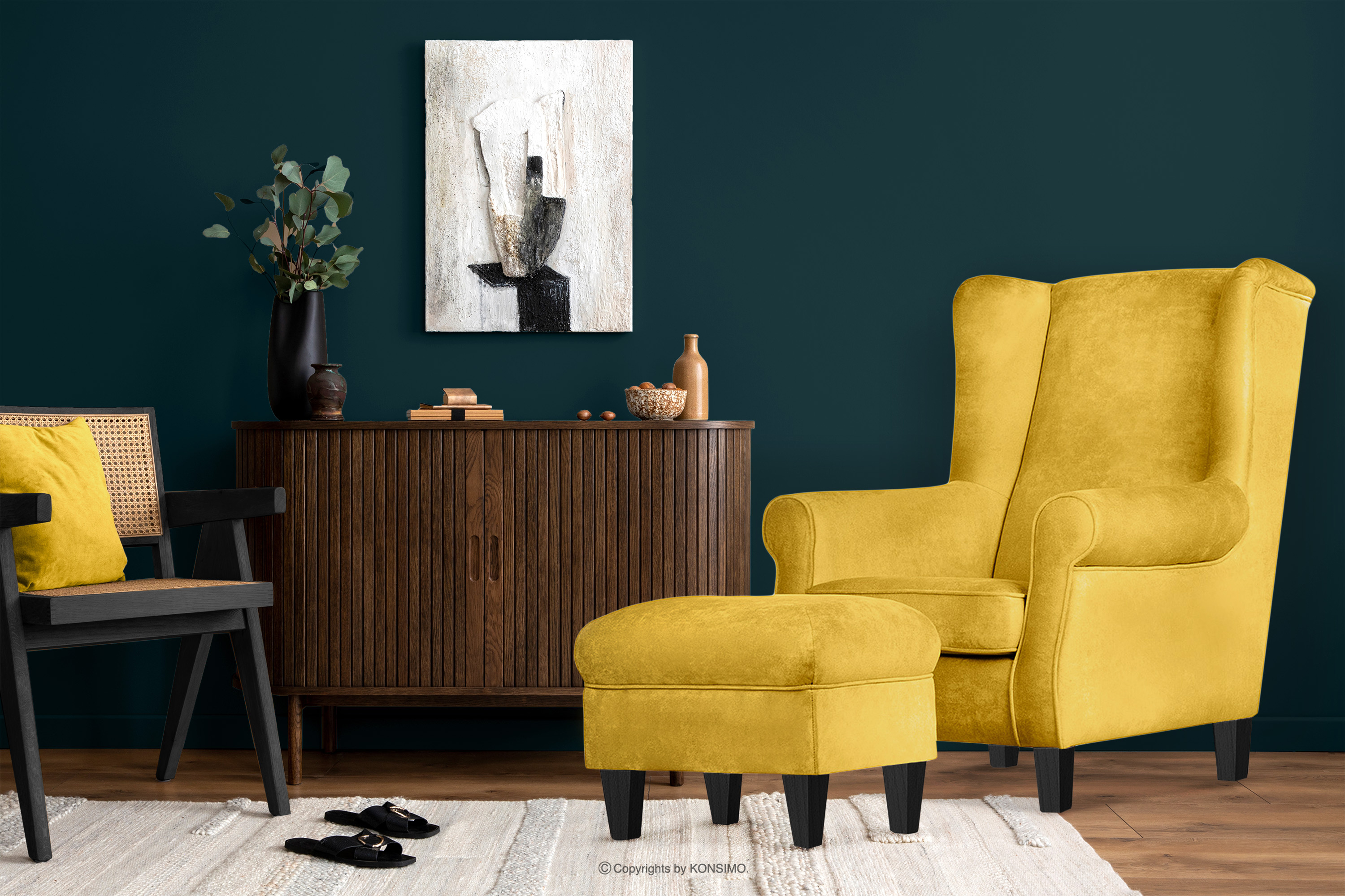 MILES zobacz całą kolekcję Fotel uszak i puf komplet żółty/czarny- kolor żółty/czarny