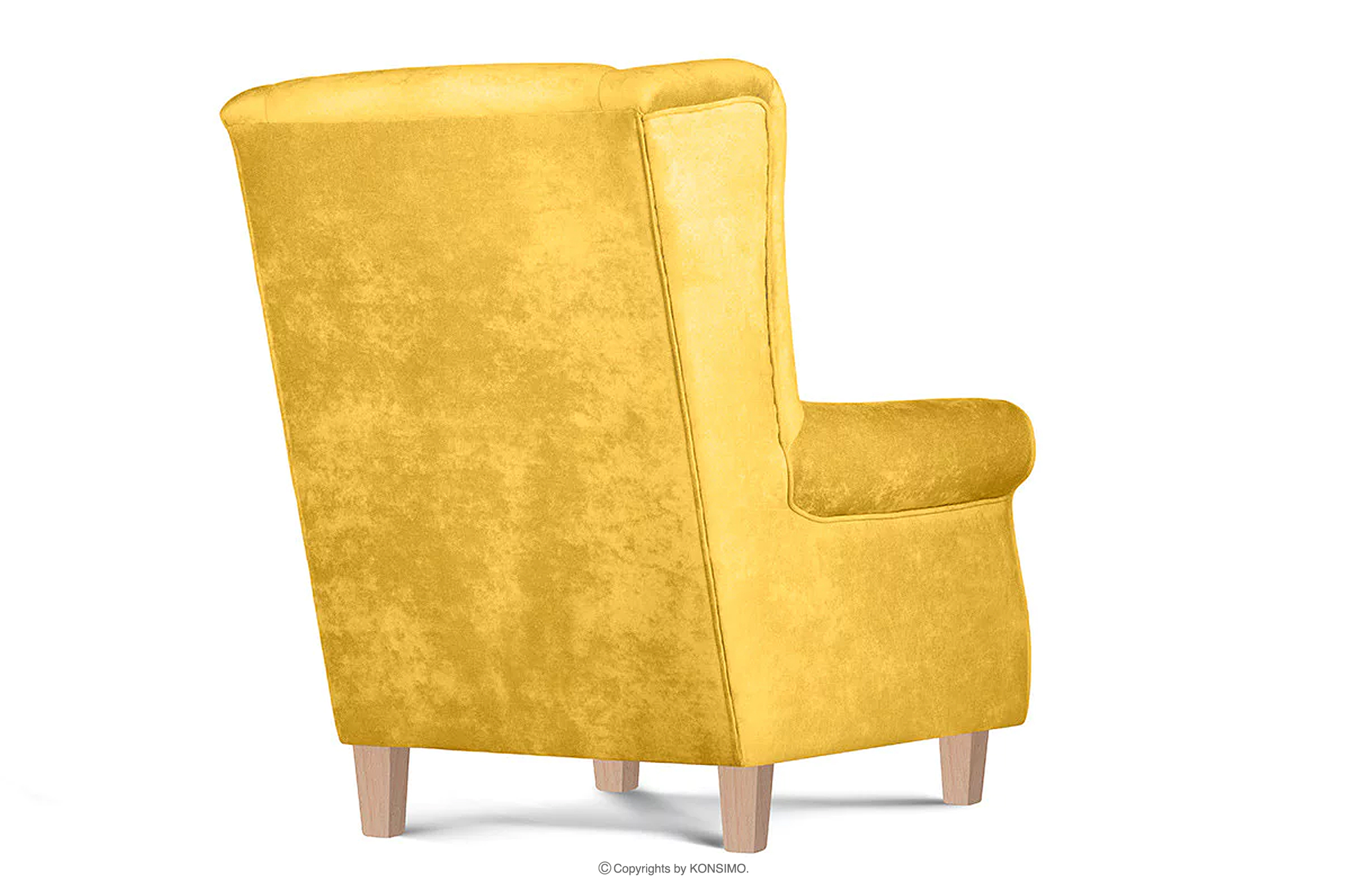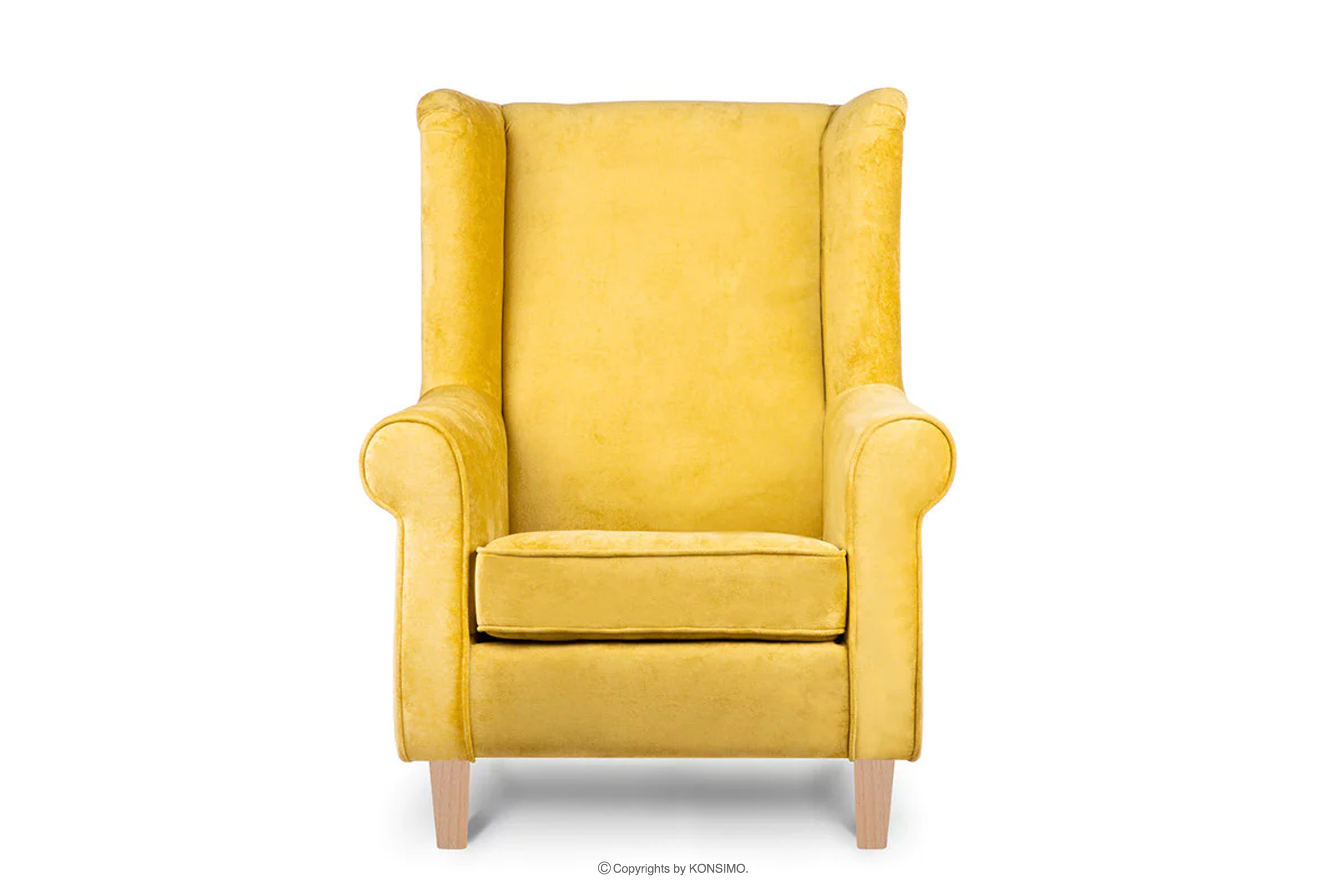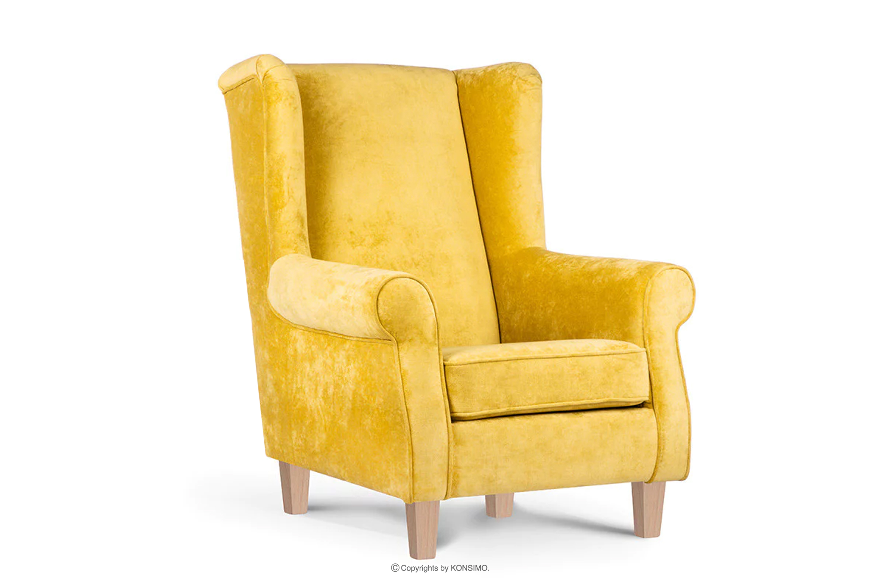 MILES zobacz całą kolekcję Fotel uszak i puf komplet żółty/buk- kolor żółty/buk
