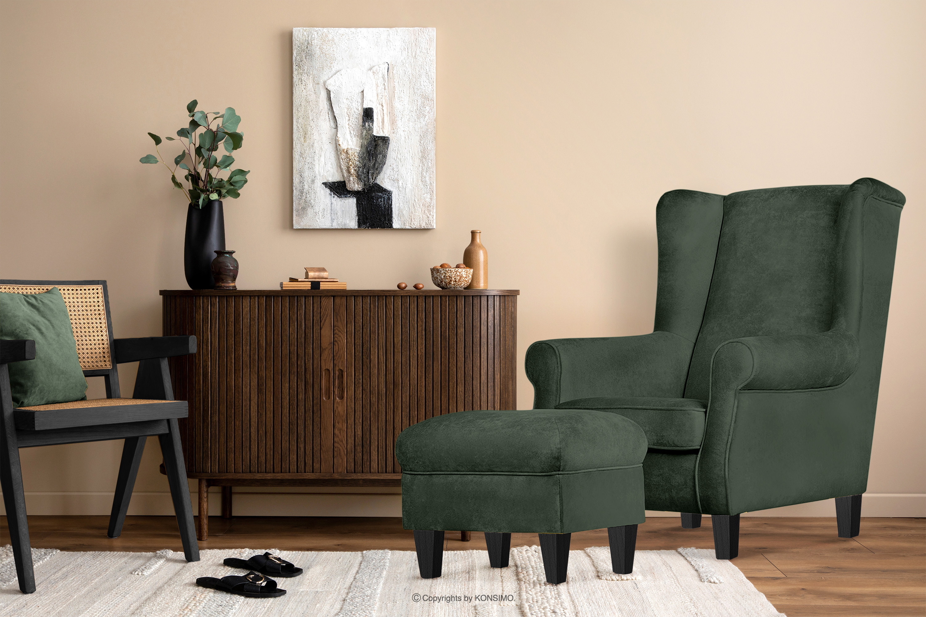 MILES zobacz całą kolekcję Zestaw fotel uszak i puf zielony/czarny- kolor zielony/czarny