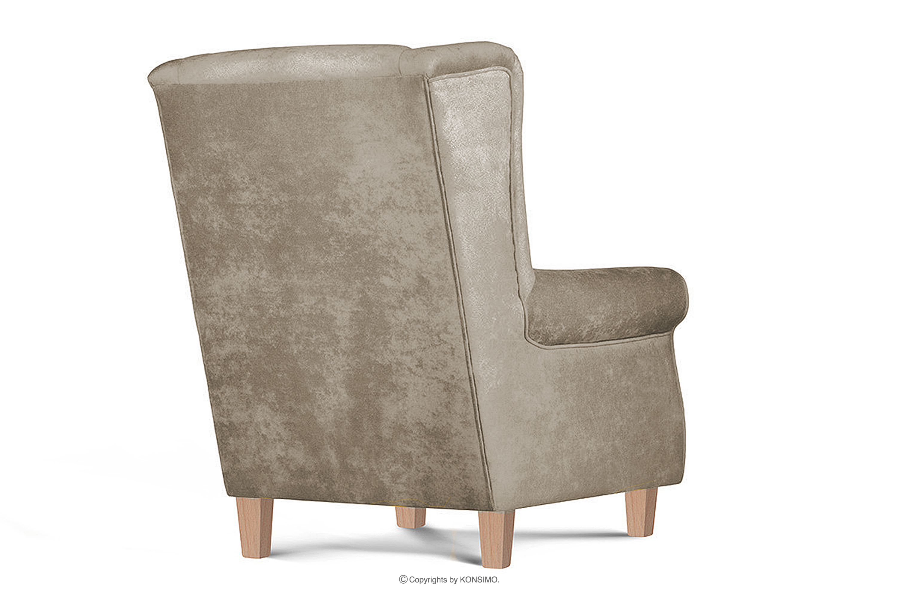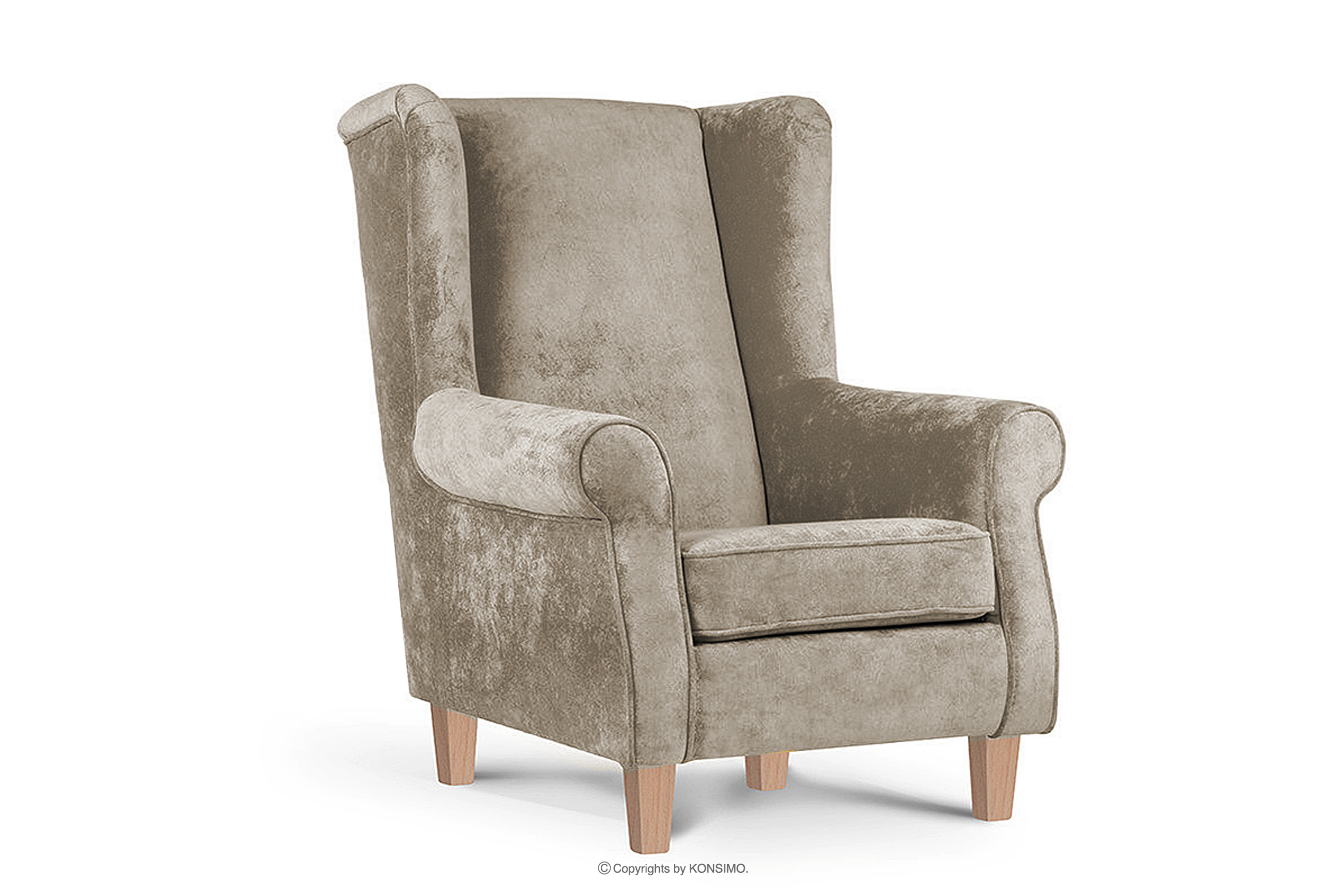 Zestaw fotel uszak i puf beżowy/buk MILES - kolor beżowy/buk