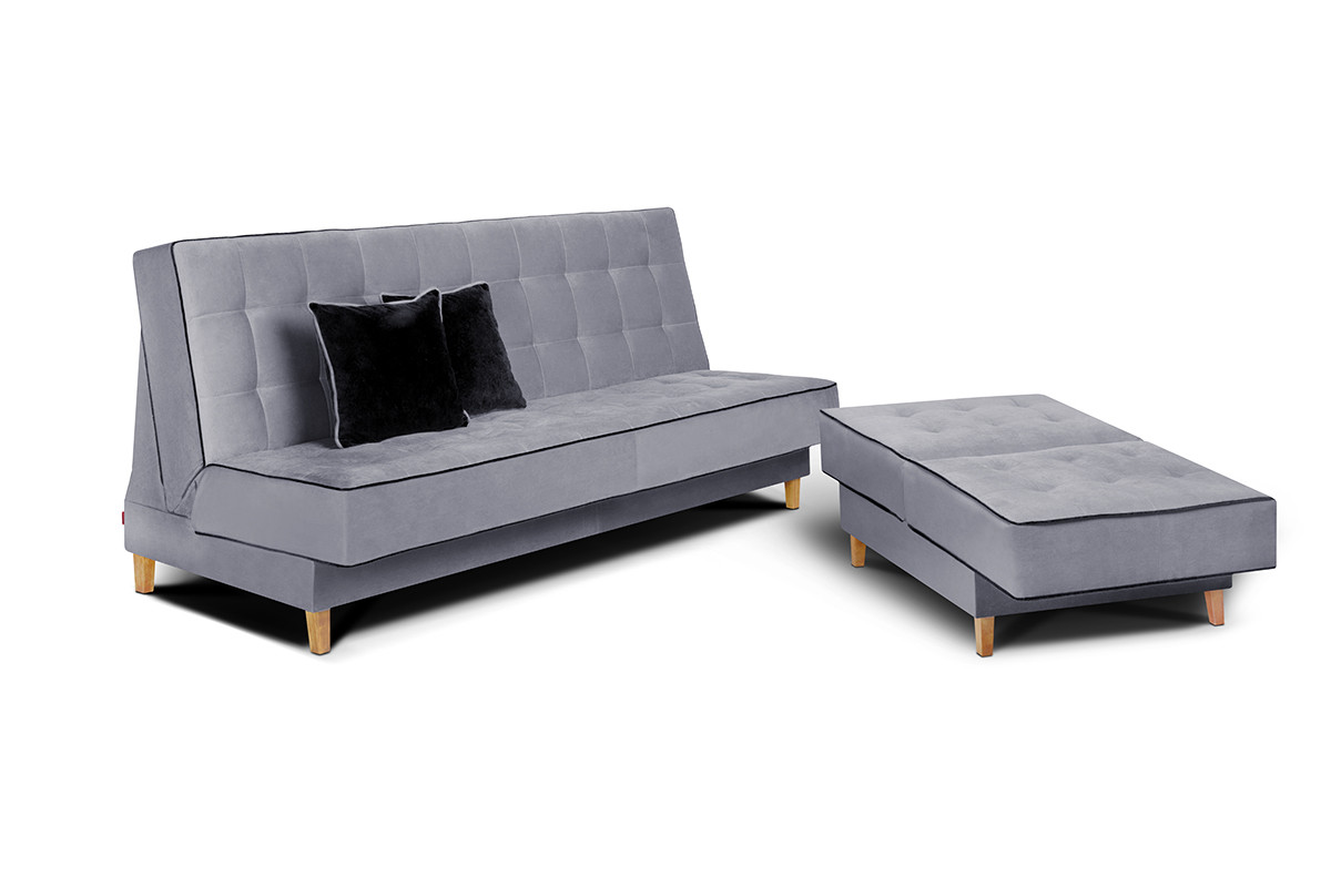 Świetnie sprawdza się jako kanapa do spania dla gości oraz podstawowe łóżko w mniejszych mieszkaniach, czy akademikach. Wykonane z pianki wysokoelastycznej i sprężyny falistej siedzisko zapewnia komfort użytkowania i doskonały wypoczynek. Pojemnik na pościel wyposażony został w otwory wentylacyjne. Nóżki są z drewna bukowego, a ich wysokość to 11 cm.